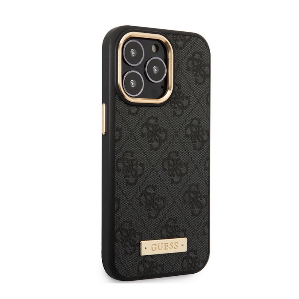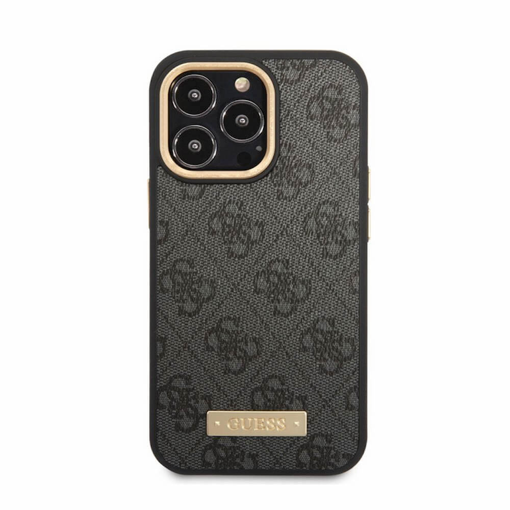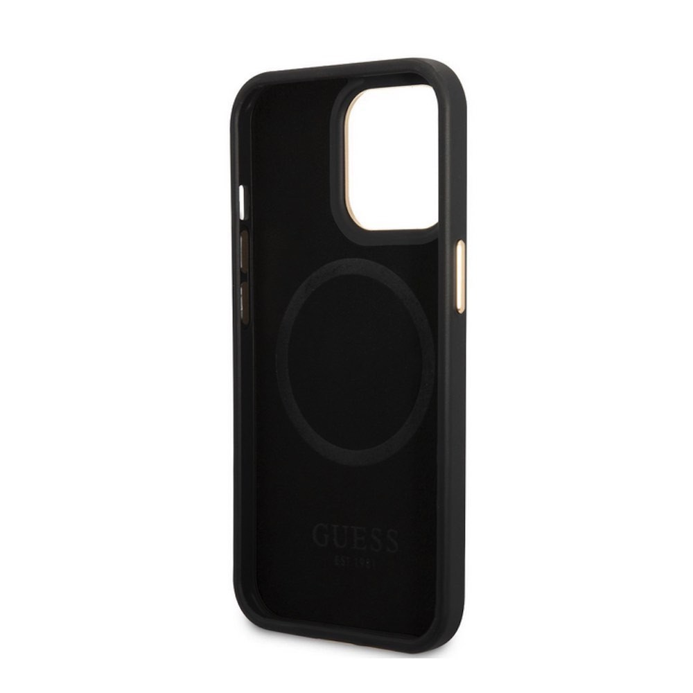 Guess PU 4G MagSafe Leather Hard Case - дизайнерски кожен кейс с MagSafe за iPhone 13 Pro (черен)