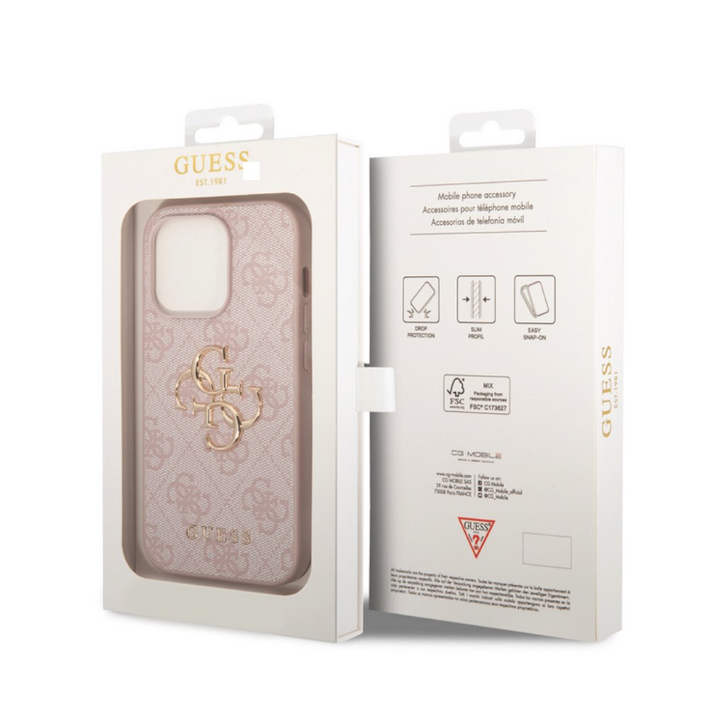 Guess PU 4G Metal Logo Leather Hard Case - дизайнерски кожен кейс за iPhone 15 Pro (розов)