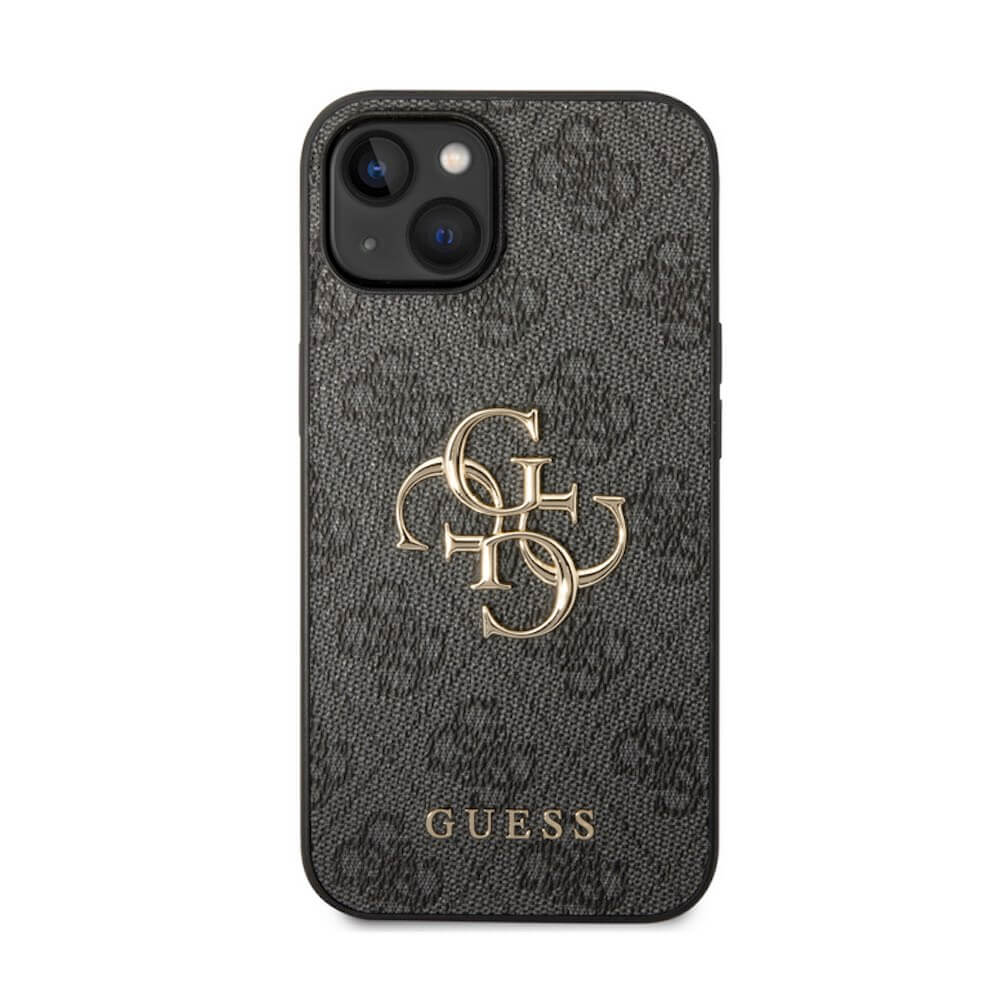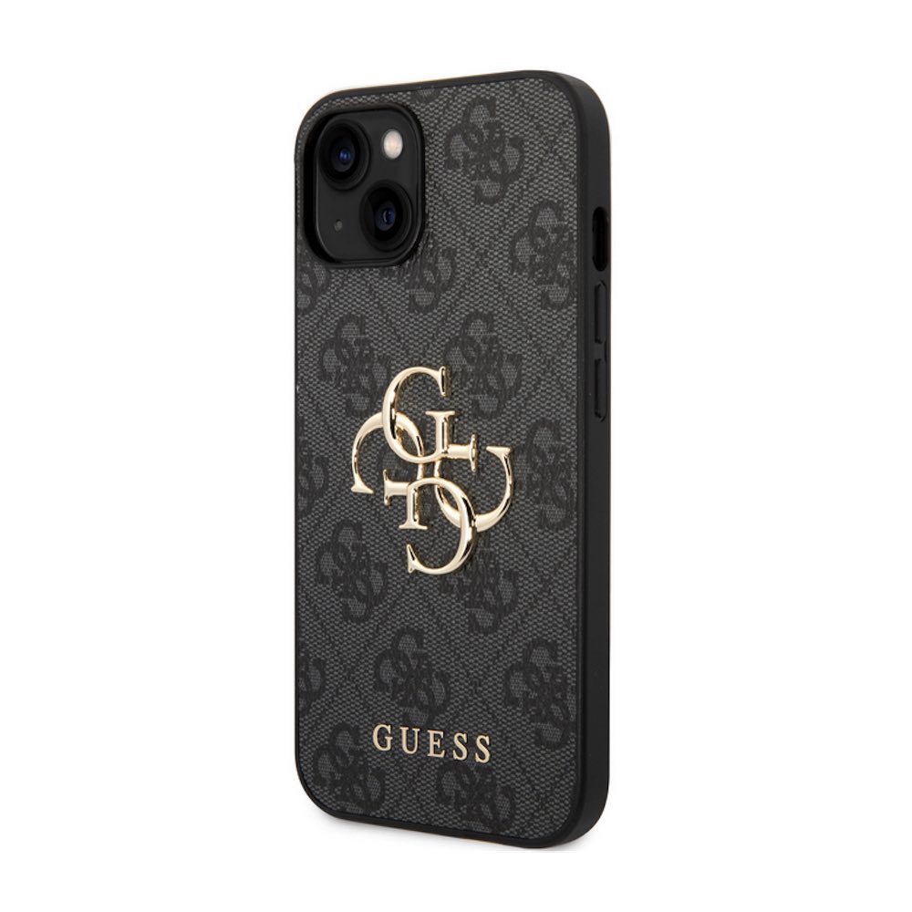 Guess PU 4G Metal Logo Leather Hard Case - дизайнерски кожен кейс за iPhone 15 (сив)