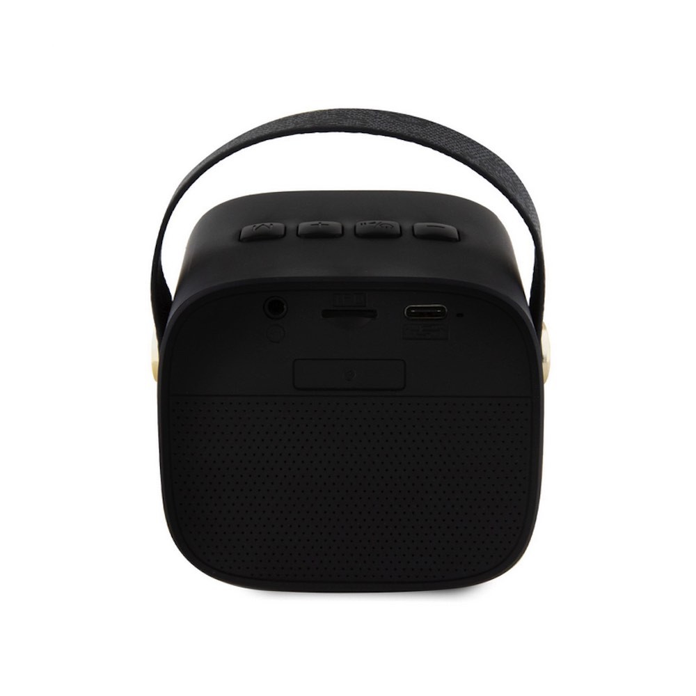 Guess PU 4G Mini Bluetooth Speaker With Strap 5W - дизайнерски портативен безжичен блутут спийкър за мобилни устройства (черен)