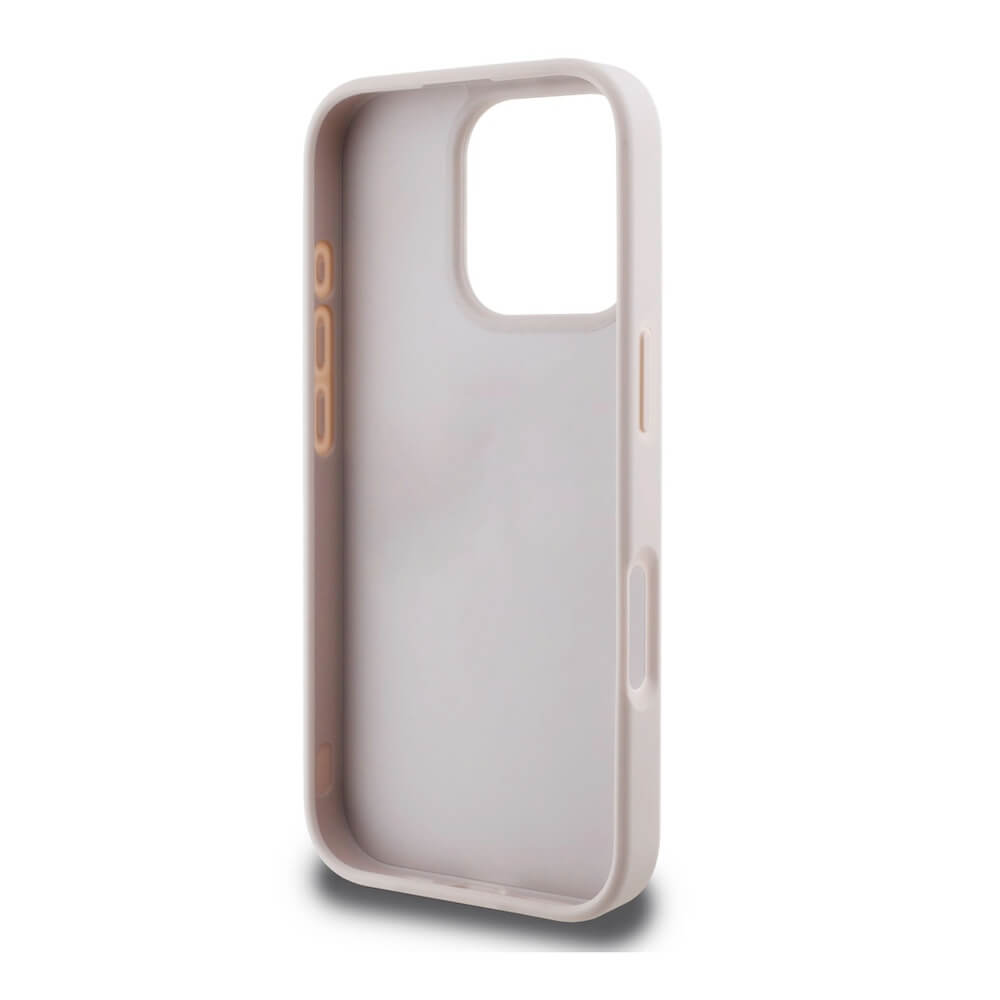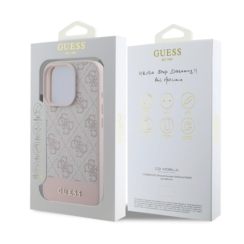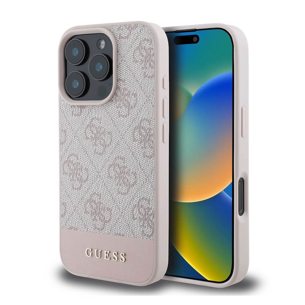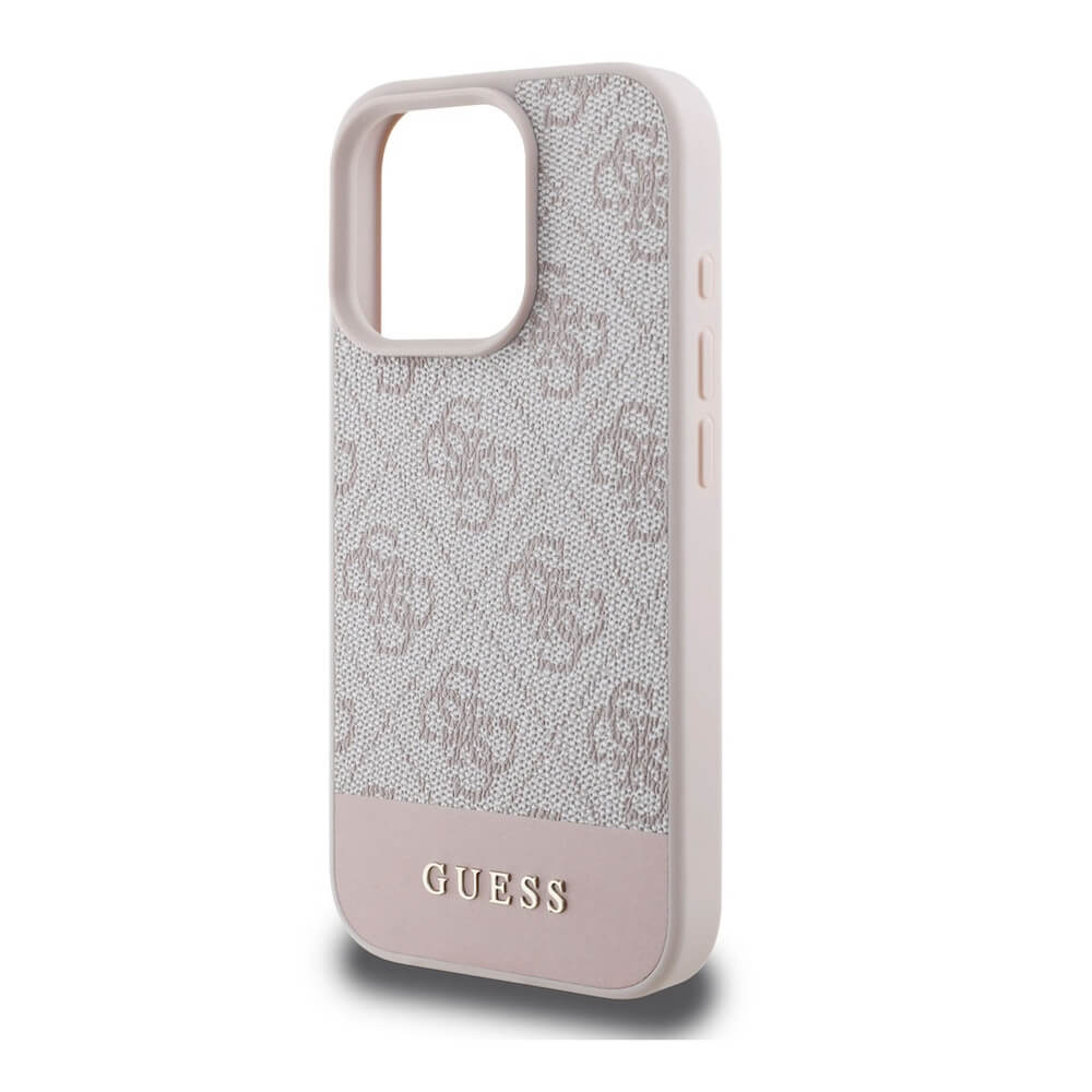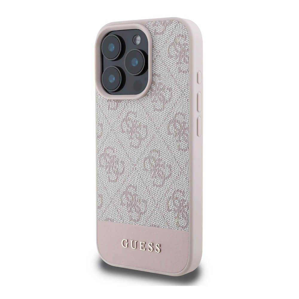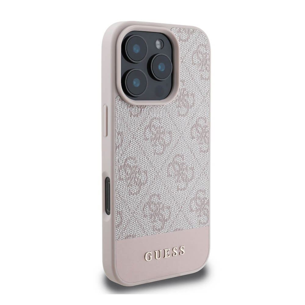 Guess PU 4G Stripe Leather Hard Case - дизайнерски кожен кейс за iPhone 16 Pro (розов)