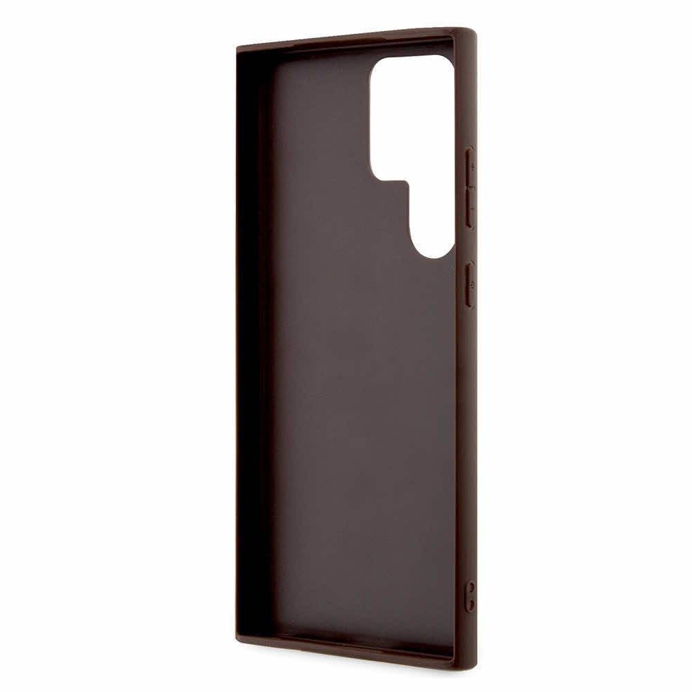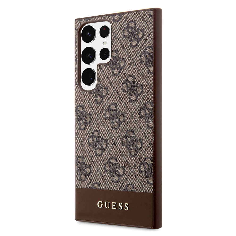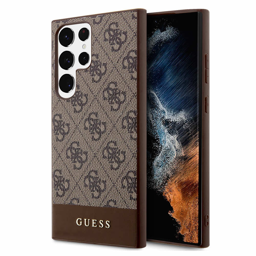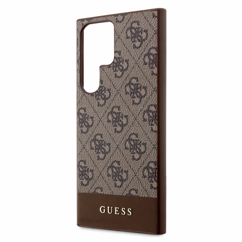 Guess PU 4G Stripe Leather Hard Case - дизайнерски кожен кейс за Samsung Galaxy S24 Ultra (кафяв)