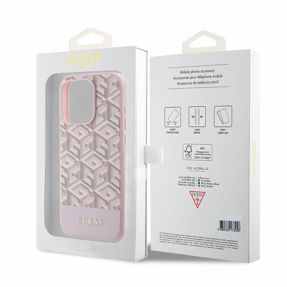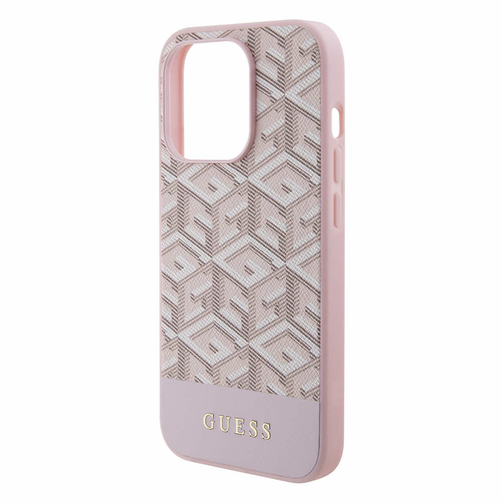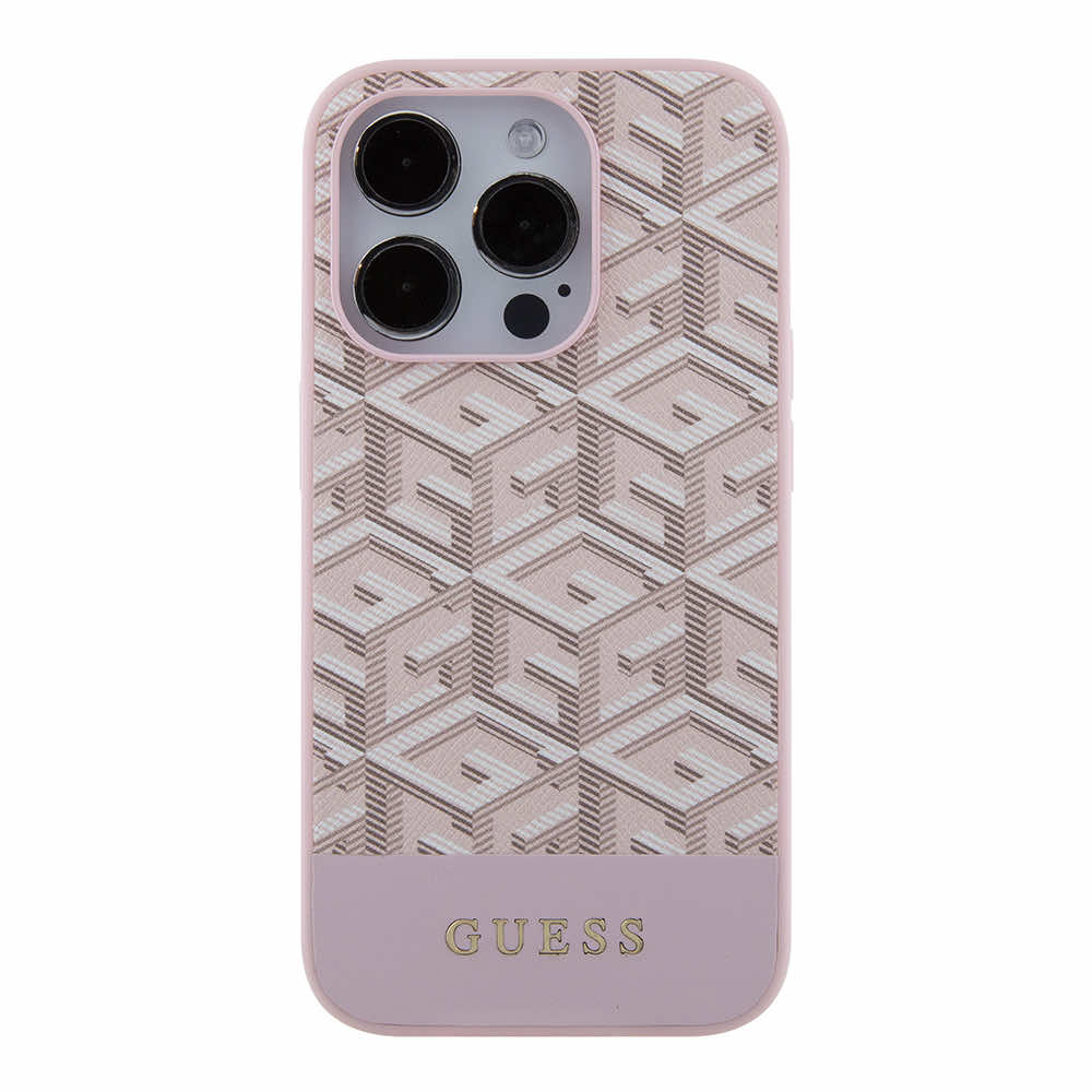 Guess PU G Cube MagSafe Leather Hard Case - дизайнерски кожен кейс с MagSafe за iPhone 15 Pro (розов)
