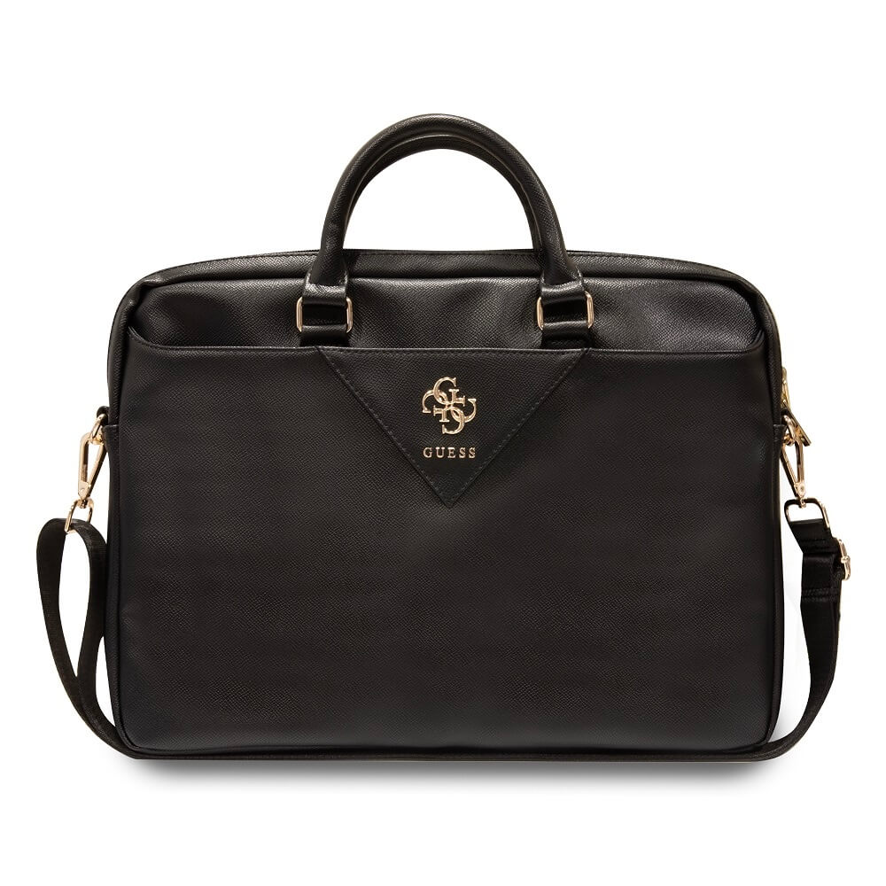 Guess PU Grained 4G Metal Logo Laptop Bag 16 - луксозна дизайнерска чанта с дръжки и презрамка за преносими компютри до 16 инча (черен)