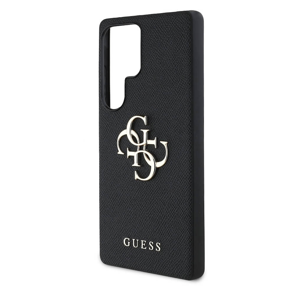 Guess PU Grained 4G Metal Logo Leather Hard Case - дизайнерски кожен кейс за Samsung Galaxy S25 Ultra (черен)