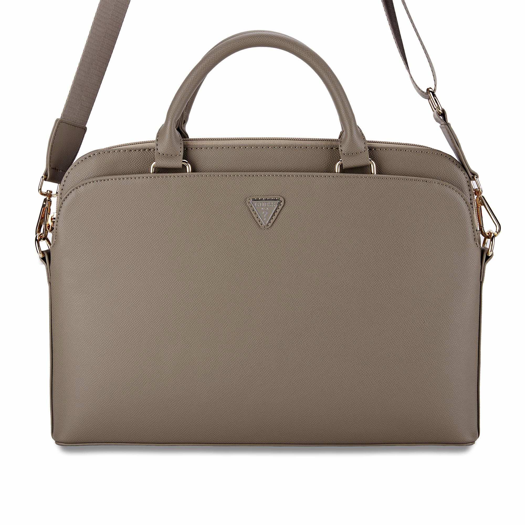 Guess PU Grained Triangle Logo Laptop Bag 16 - луксозна дизайнерска чанта с дръжки и презрамка за преносими компютри до 16 инча (кафяв)