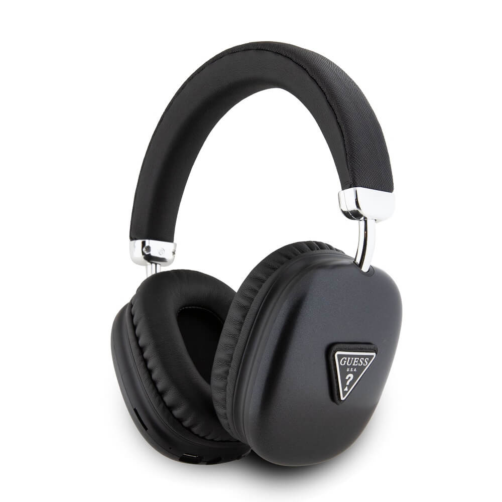 Guess PU Leather 4G Triangle Logo Bluetooth Headphones - безжични блутут слушалки с микрофон за мобилни устройства (черен)