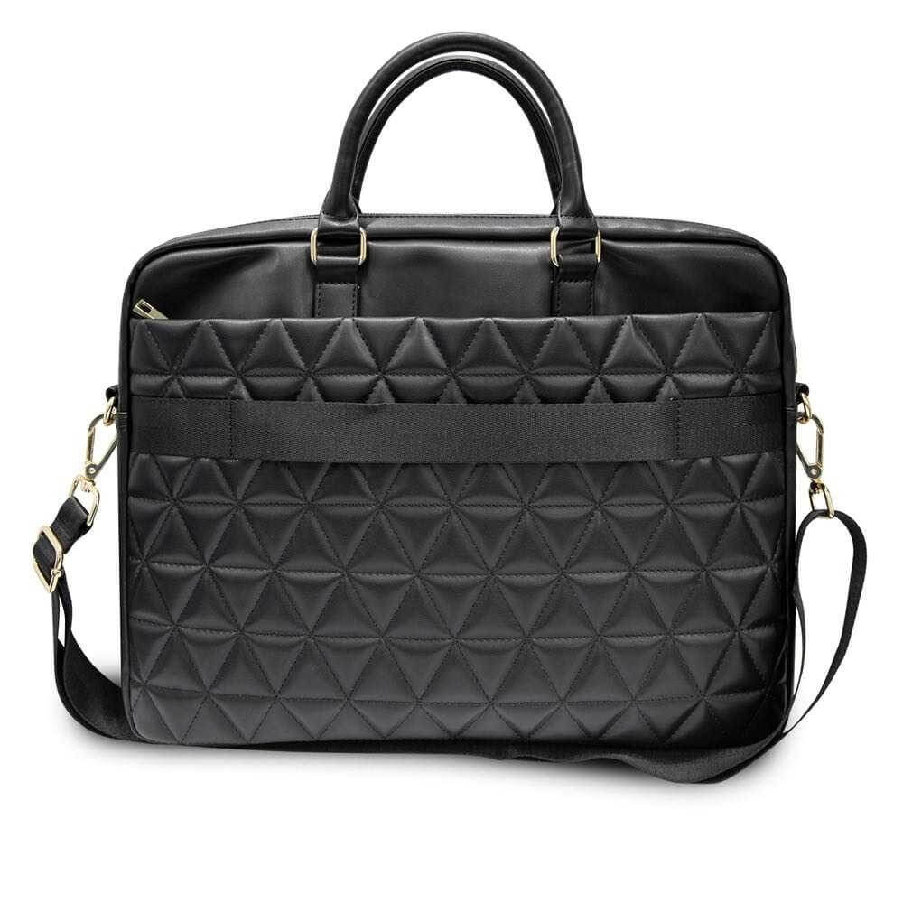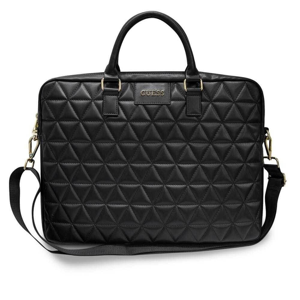 Guess Quilted Laptop Bag - луксозна дизайнерска чанта с дръжки и презрамка за преносими компютри до 15 инча (черна)