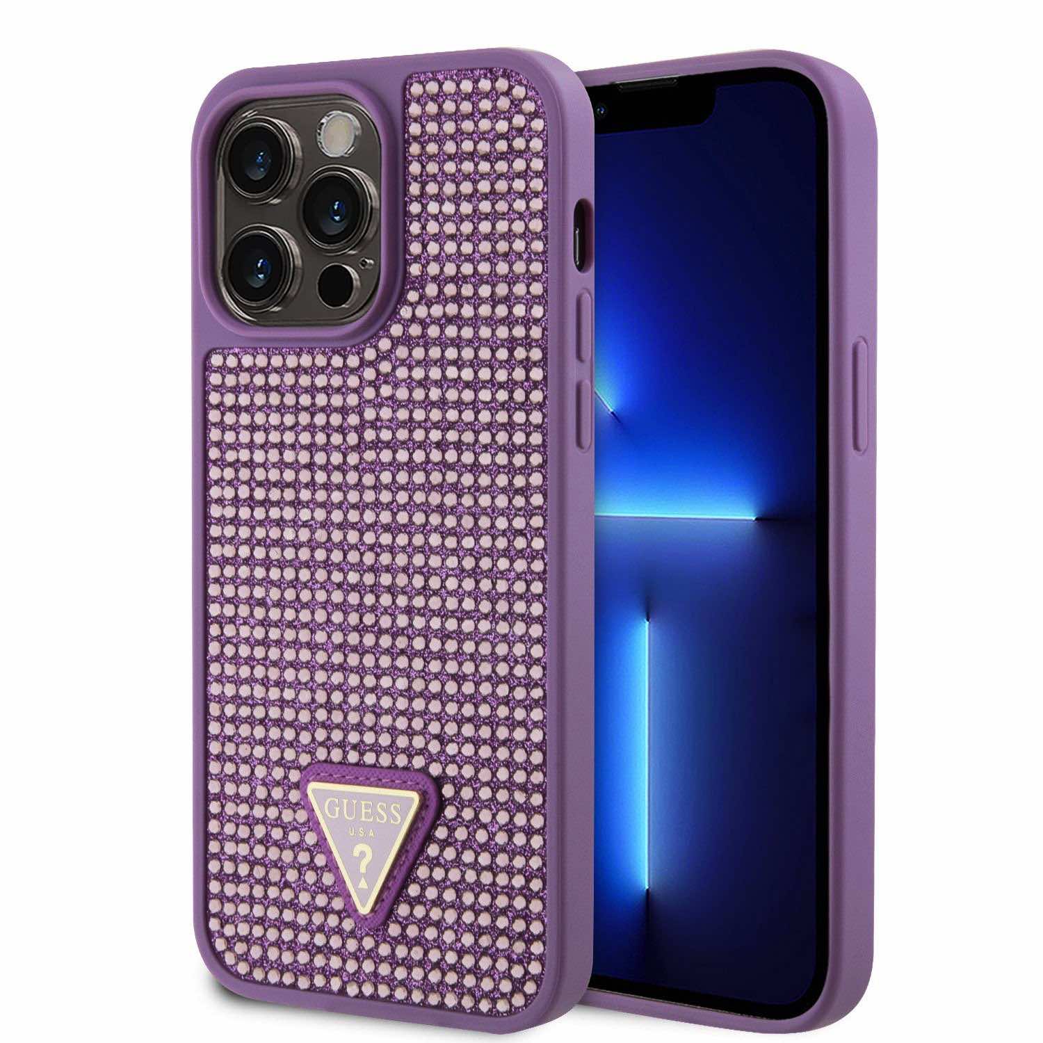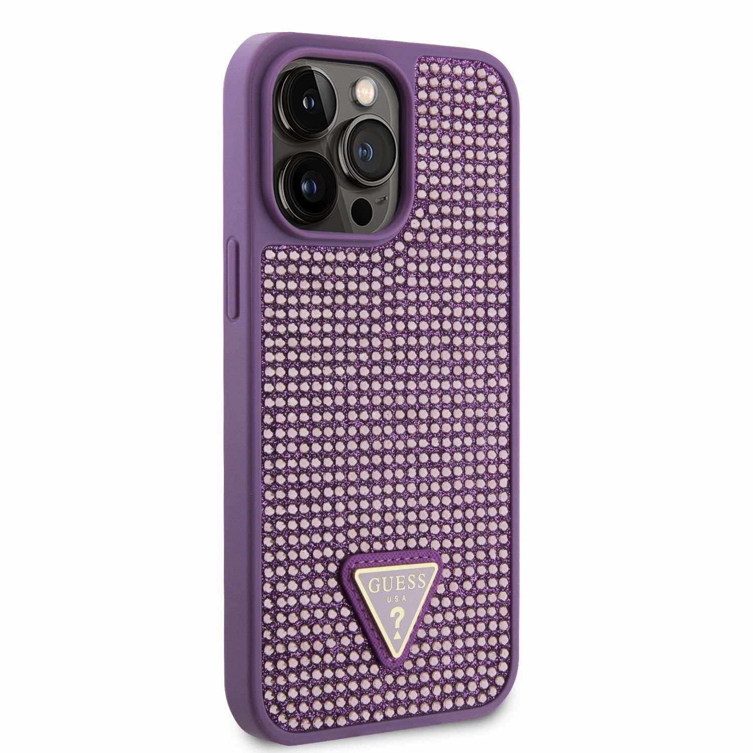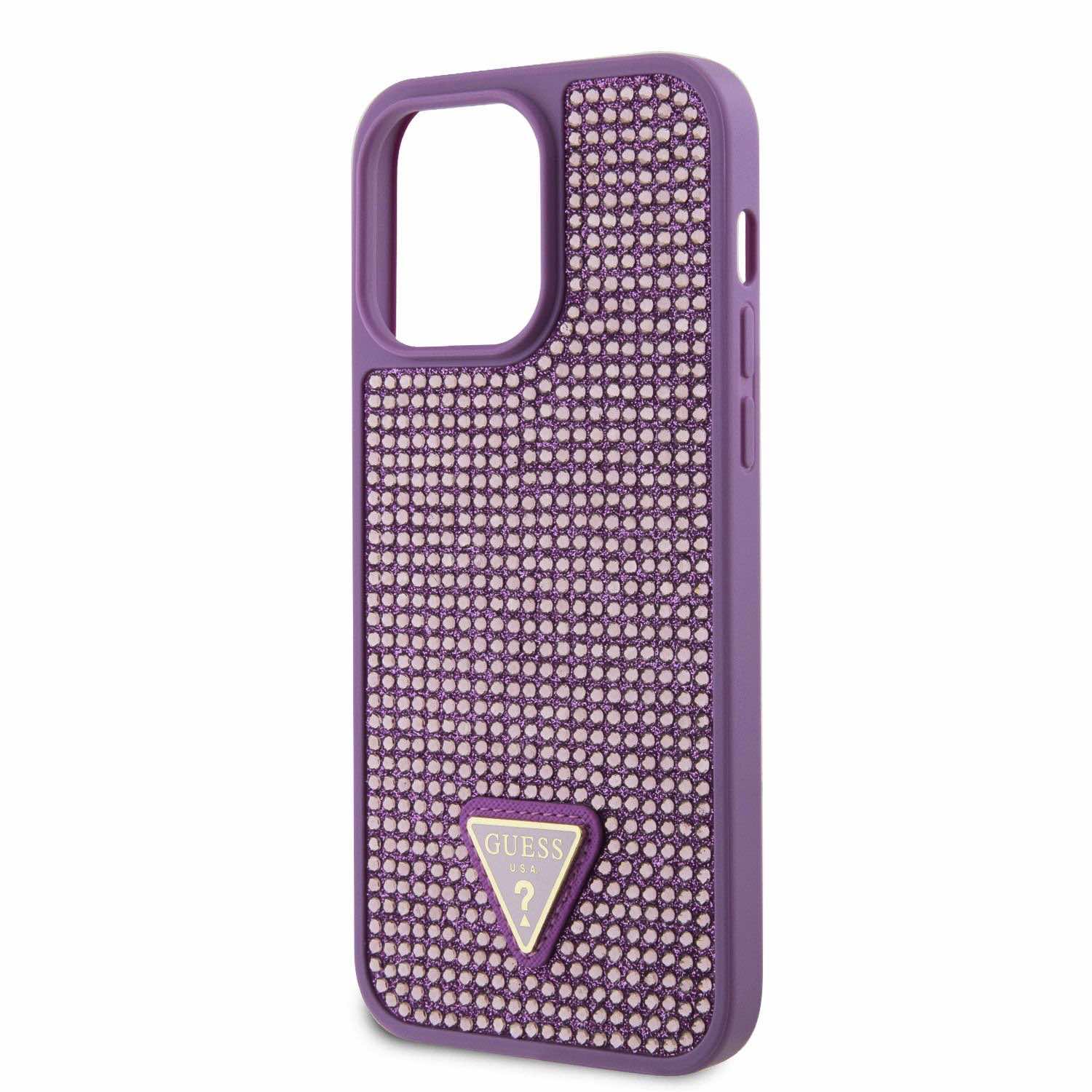 Guess Rhinestones Triangle Metal Logo Case - силиконов (TPU) калъф за iPhone 15 Pro Max (лилав)