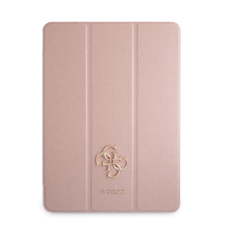 Guess Saffiano Folio Cover - дизайнерски кожен кейс и поставка за iPad Pro 11 M1 (2021), iPad Pro 11 (2020), iPad Pro 11 (2018) (розов)