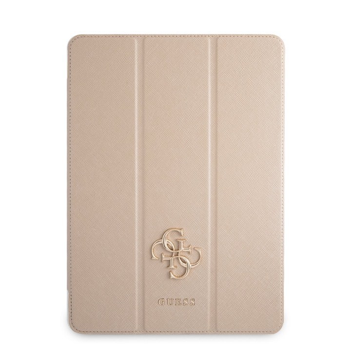 Guess Saffiano Folio Cover - дизайнерски кожен кейс и поставка за iPad Pro 12.9 M1 (2021) (златист)