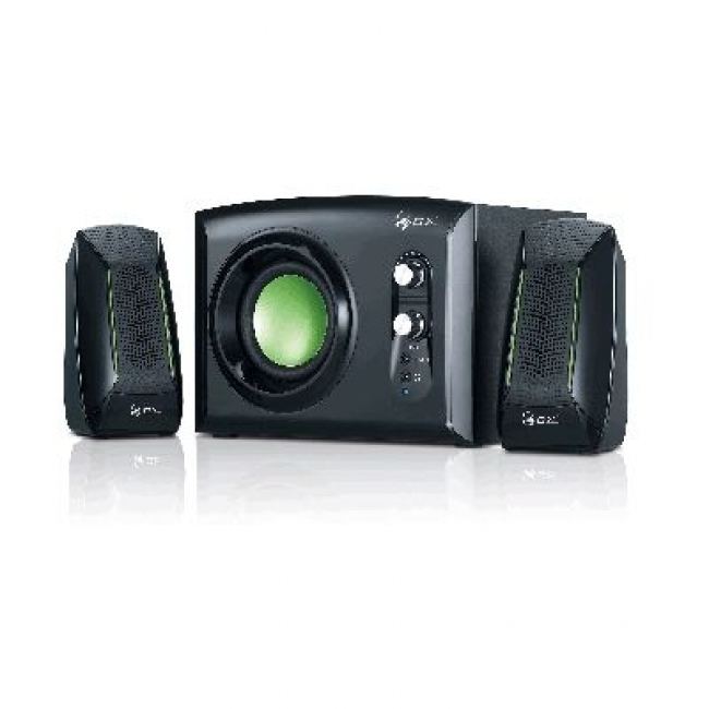 Продукта GX SW-G2.1 1200 - Subwoofer System 30W, headphone jack and line-in jack, black with green highlights + подарък тениска GX е добавен в сайта на 14 Ноември 2014