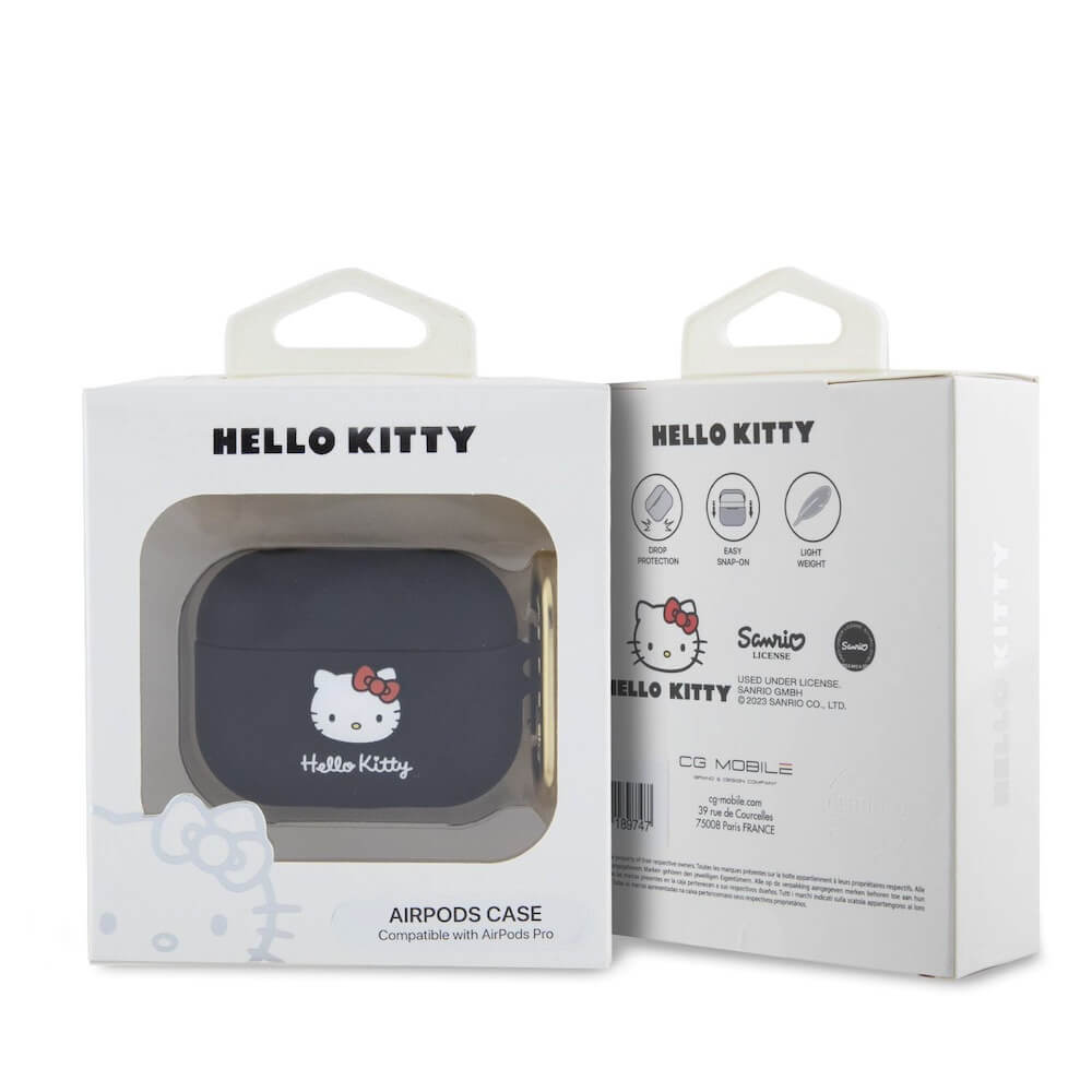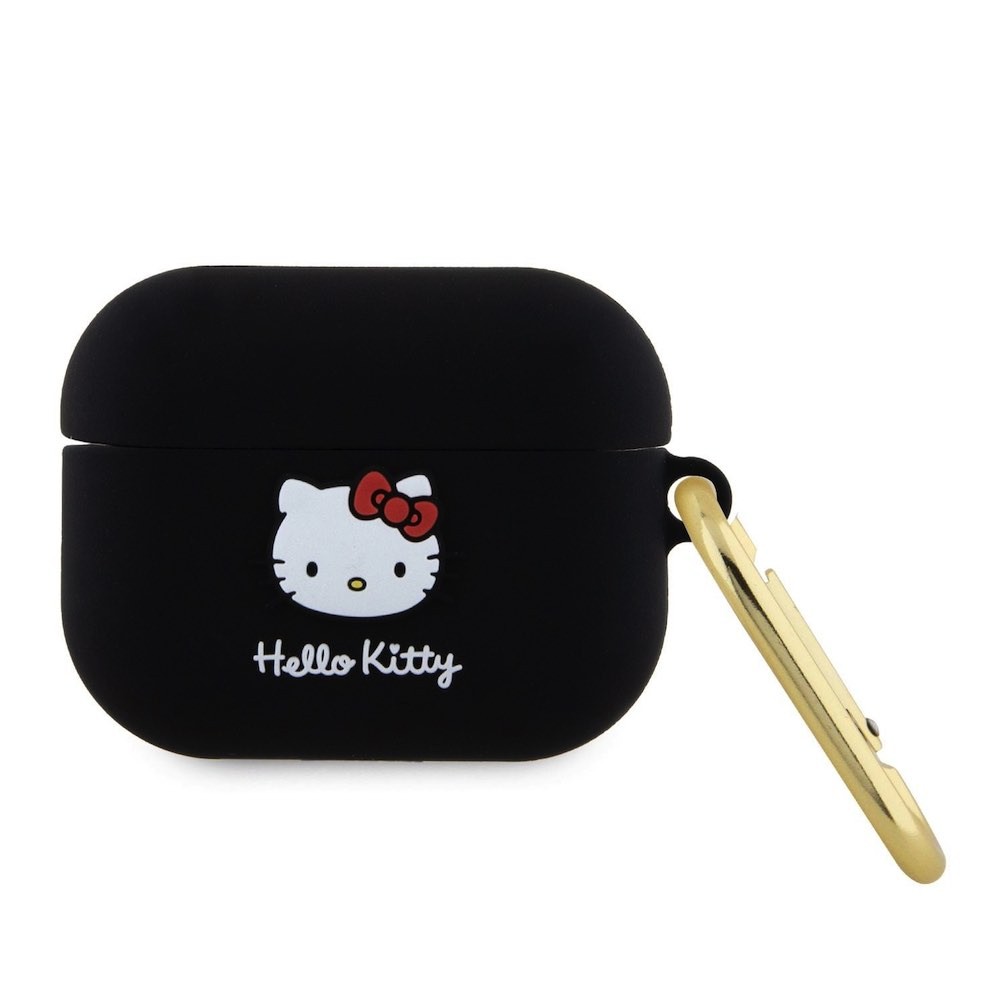 Hello Kitty AirPods Liquid Silicone 3D Kitty Head Logo Case - силиконов калъф с карабинер за Apple AirPods Pro (черен)