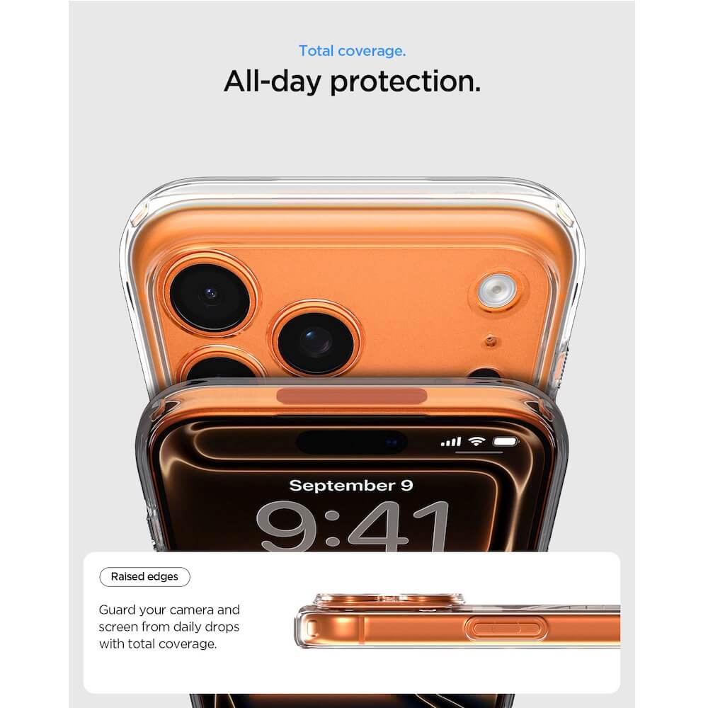 Хибриден кейс с висока степен на защита с MagSafe за iPhone 17 Pro - Spigen Ultra Hybrid MagSafe Case (прозрачен-оранжев)
