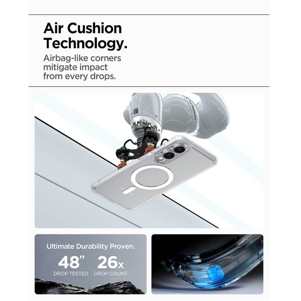 С иновационната Air Cushion Technology, кейсът предлага максимална защита при изпускане и удари. Специалната защита за бутоните позволява пълна функционалност, докато те са покрити, а нестърчащият дизайн осигурява стабилност в ръката ви.