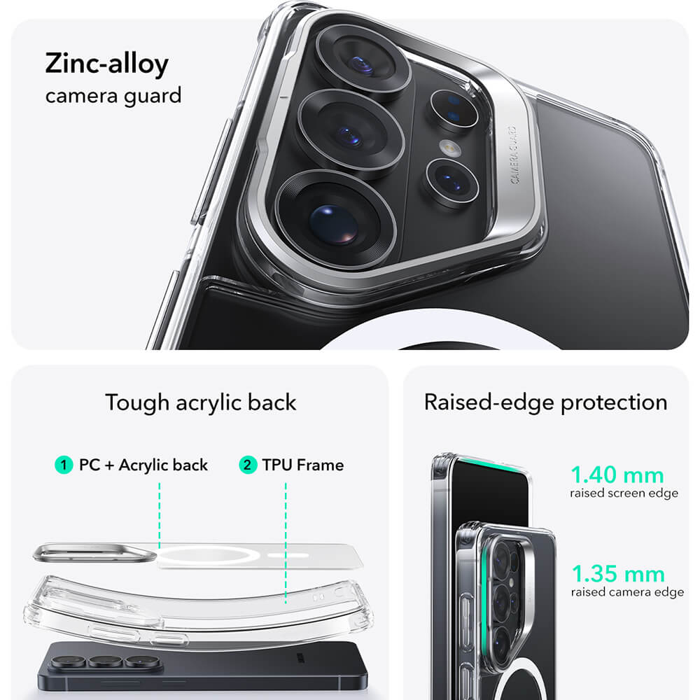 Хибриден кейс с висока степен на защита с MagSafe за Samsung Galaxy S26 Ultra - ESR Classic Hybrid HaloLock Kickstand MagSafe Case (прозрачен)
