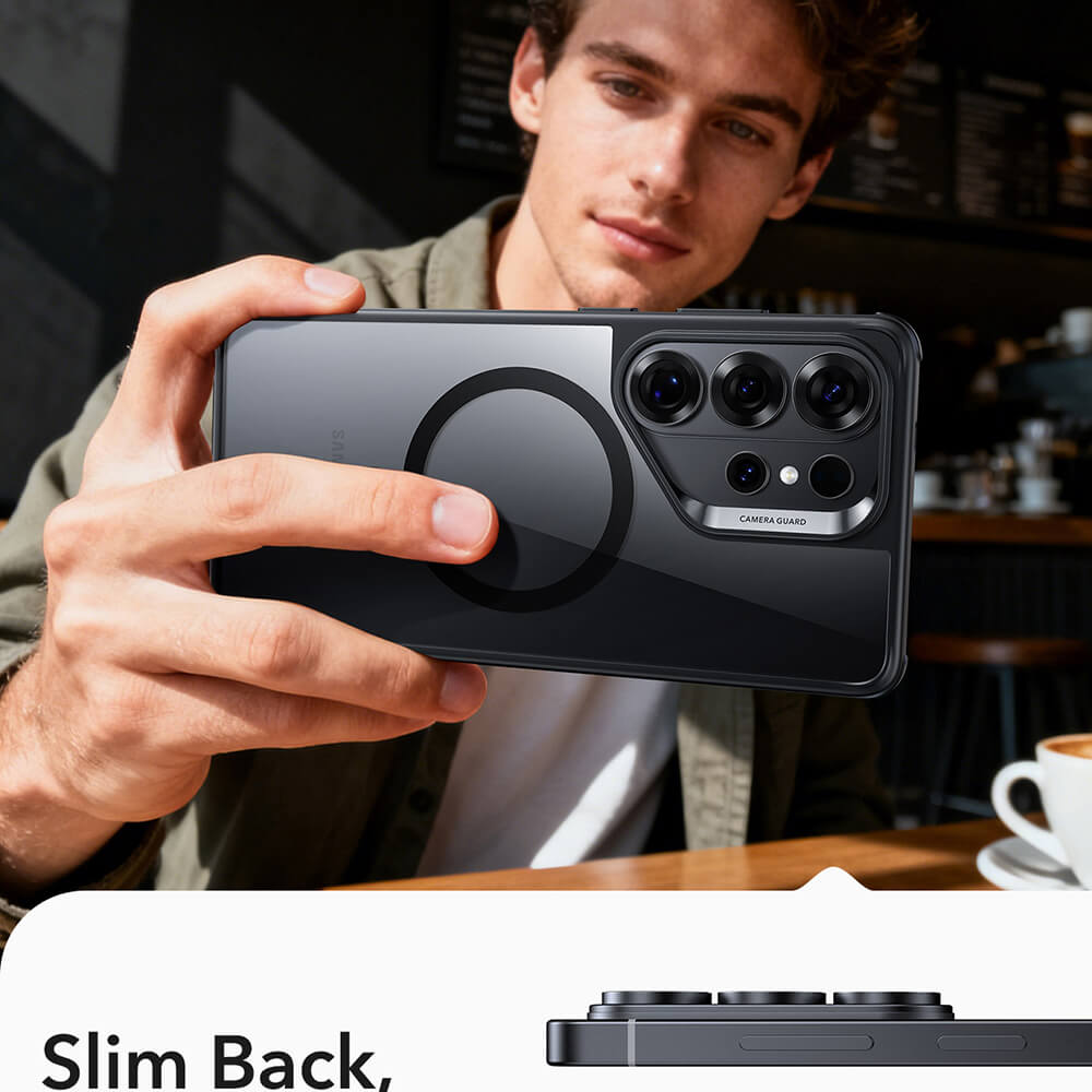 Представяме ви калъфа ESR Classic Hybrid HaloLock MagSafe Case, който предлага перфектно съчетание от защита и стил за вашия Samsung Galaxy S26 Ultra. Съчетавайки иновации и висококачествени материали, този калъф е идеален избор за всеки, който търси надеждност и елегантен дизайн.