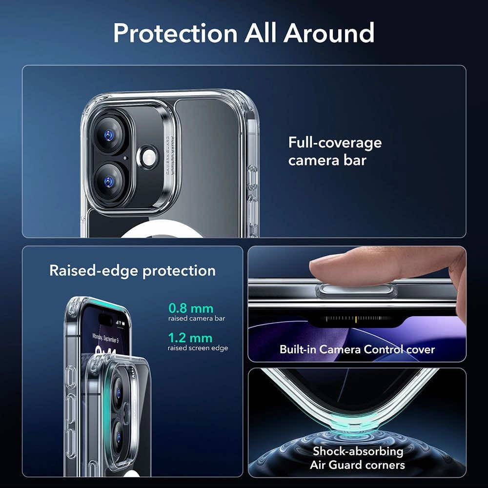 С комплект ESR Classic Hybrid HaloLock можете да сте сигурни, че вашият Apple iPhone 17 (6.3" 2025) е в безопасност. Стъкленият протектор и хибридният кейс комбинират здравина и елегантност, предоставяйки ви удобство и защита в ежедневието.