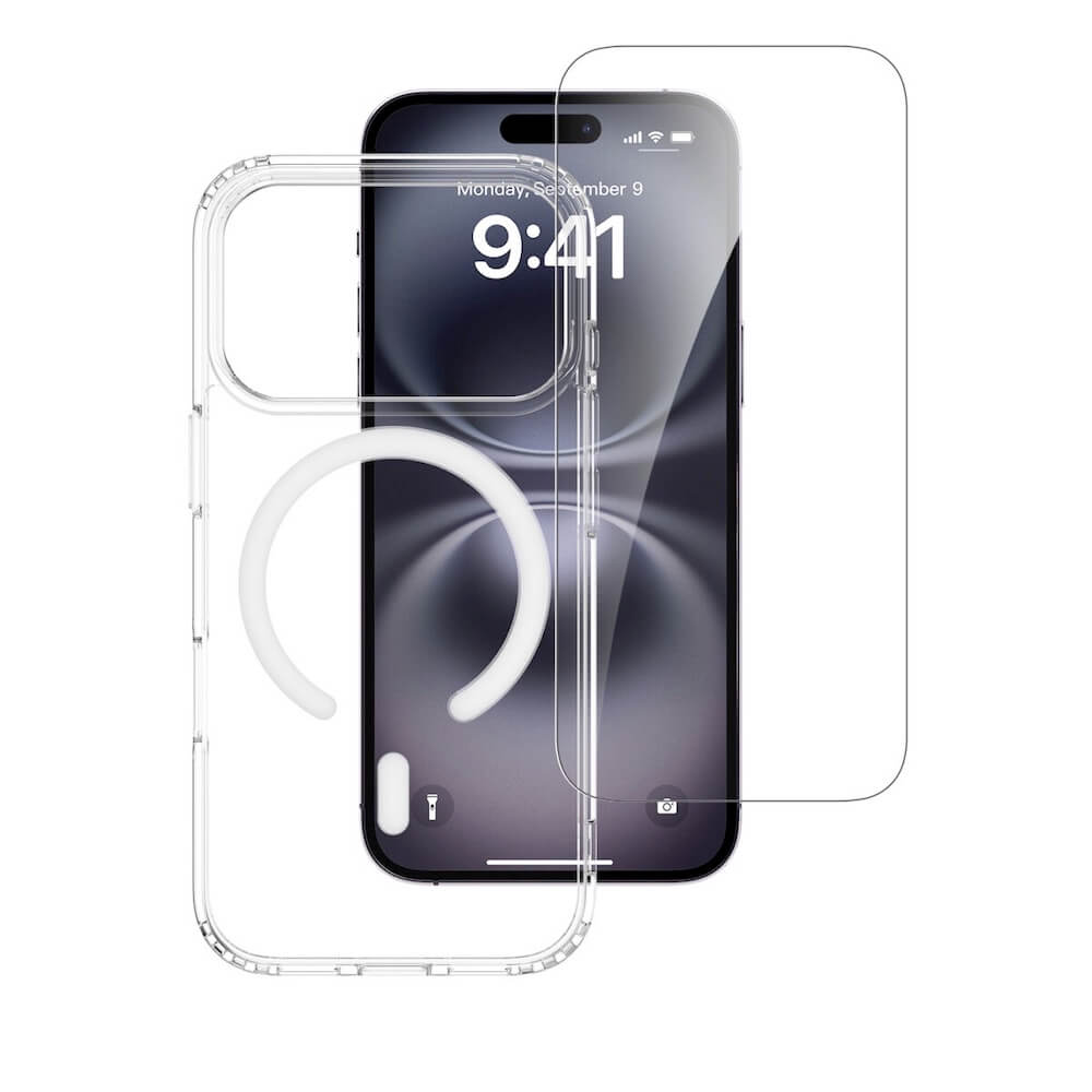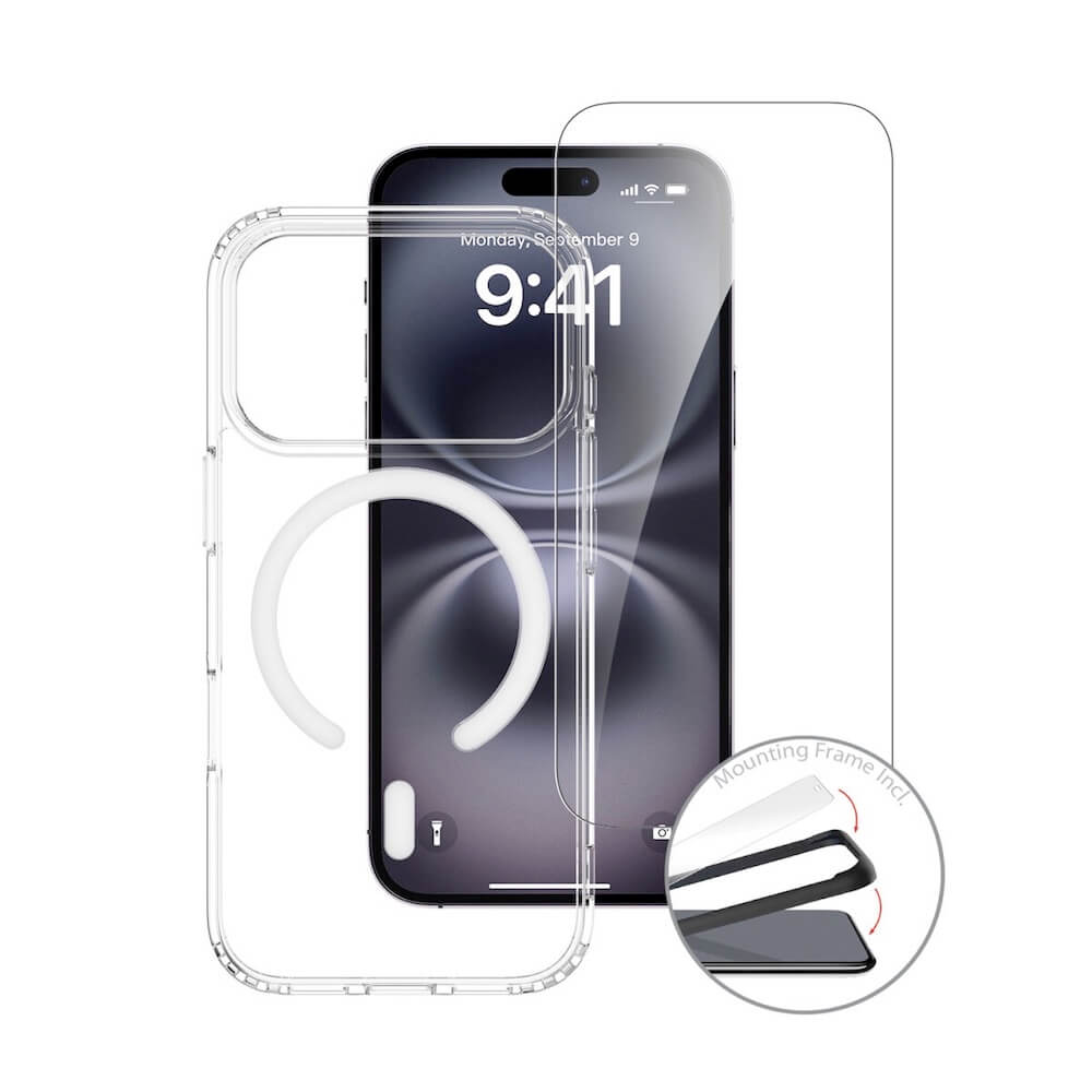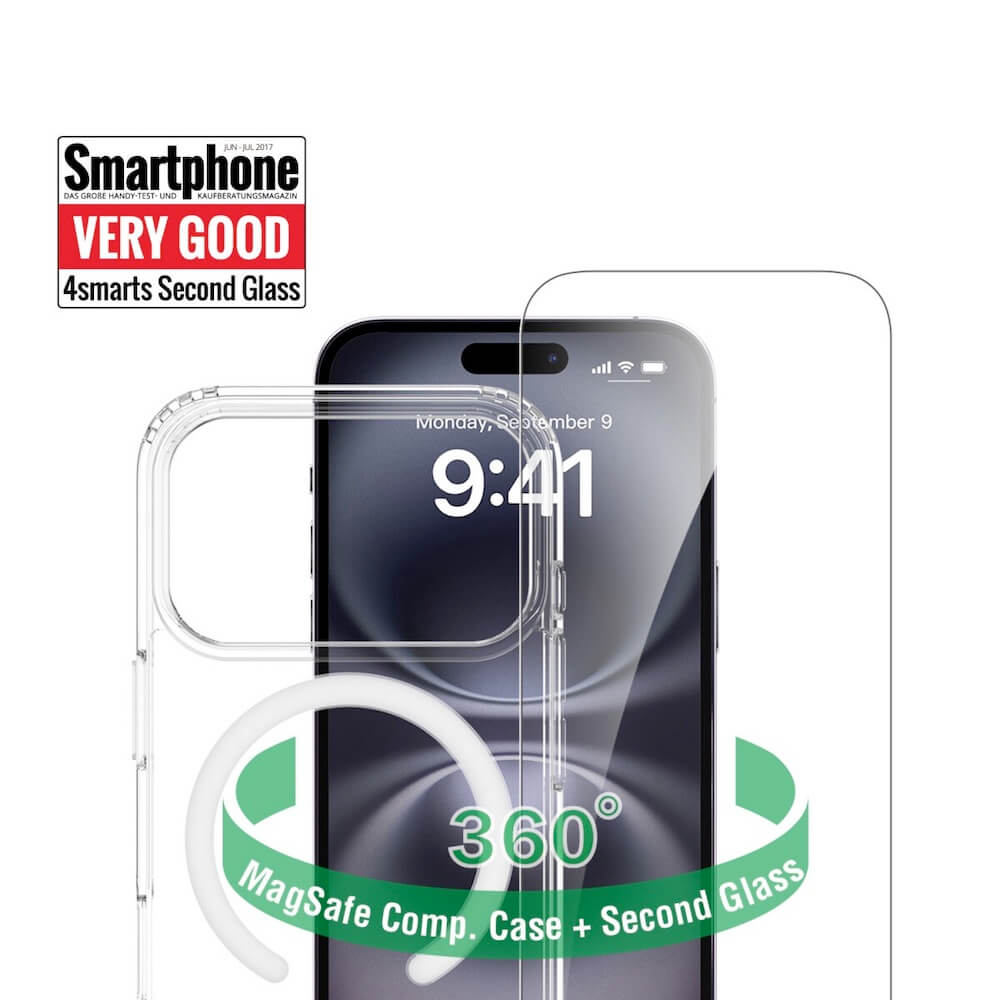 Хибриден удароустойчив кейс с MagSafe и стъклено защитно покритие за дисплея на iPhone 17 Pro - 4smarts 360° Premium Protection Set (прозрачен)