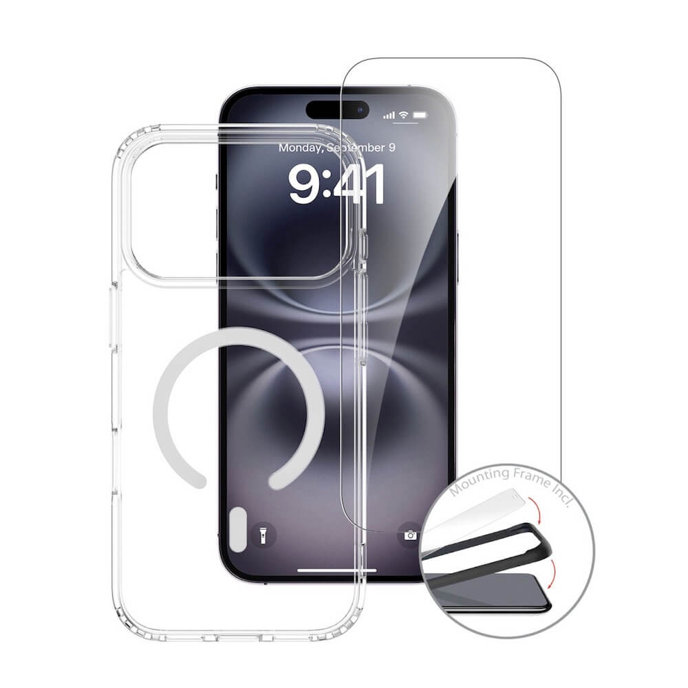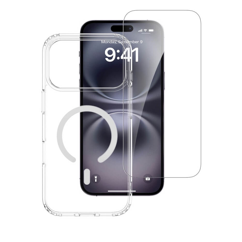Хибриден удароустойчив кейс с MagSafe и стъклено защитно покритие за дисплея на iPhone 17 Pro Max - 4smarts 360° Premium Protection Set (прозрачен)