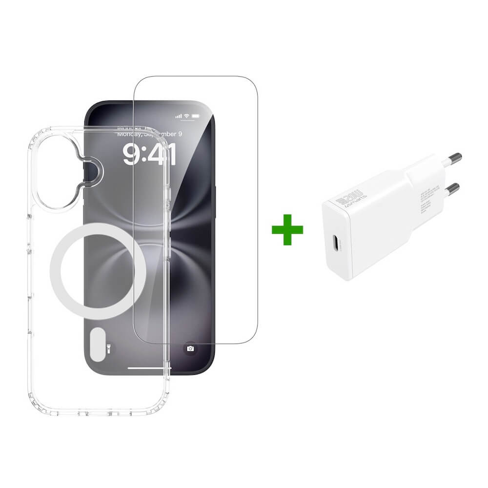 Комплектът предлага невероятна стойност, обединявайки три основни продукта в едно предложение. Удобният хибриден кейс е изработен от здрав поликарбонат и термополиуретан, което осигурява максимална защита. Стъкленият протектор е произведен в Япония и предлага висока прозрачност и устойчивост на надрасквания, а захранването с GaN технология позволява бързо зареждане на вашето устройство.