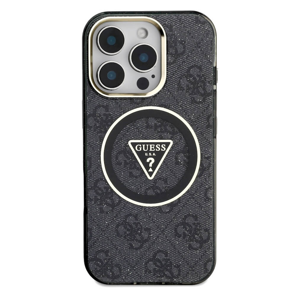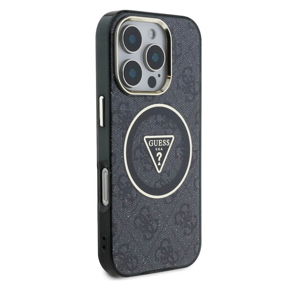 Хибриден удароустойчив кейс с MagSafe за iPhone 16 Pro Max - Guess IML Rhinestones Ring MagSafe Case (черен)