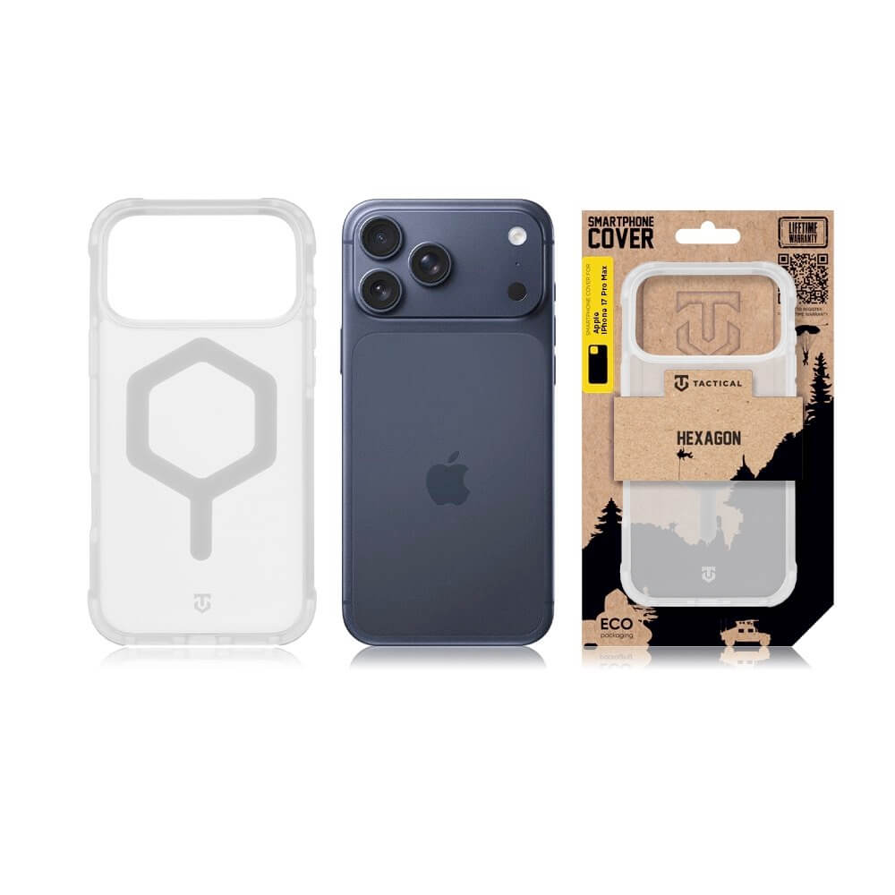 Хибриден удароустойчив кейс с MagSafe за iPhone 17 Pro Max - Tactical MagForce Hexagon Cover (бял-прозрачен)