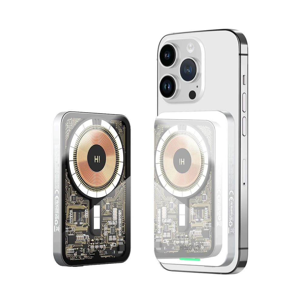 Hinovo Magnetic Wireless Power Bank 5000 mAh 20W - преносима външна батерия с USB-C порт и безжично зареждане с MagSafe (сребрист)