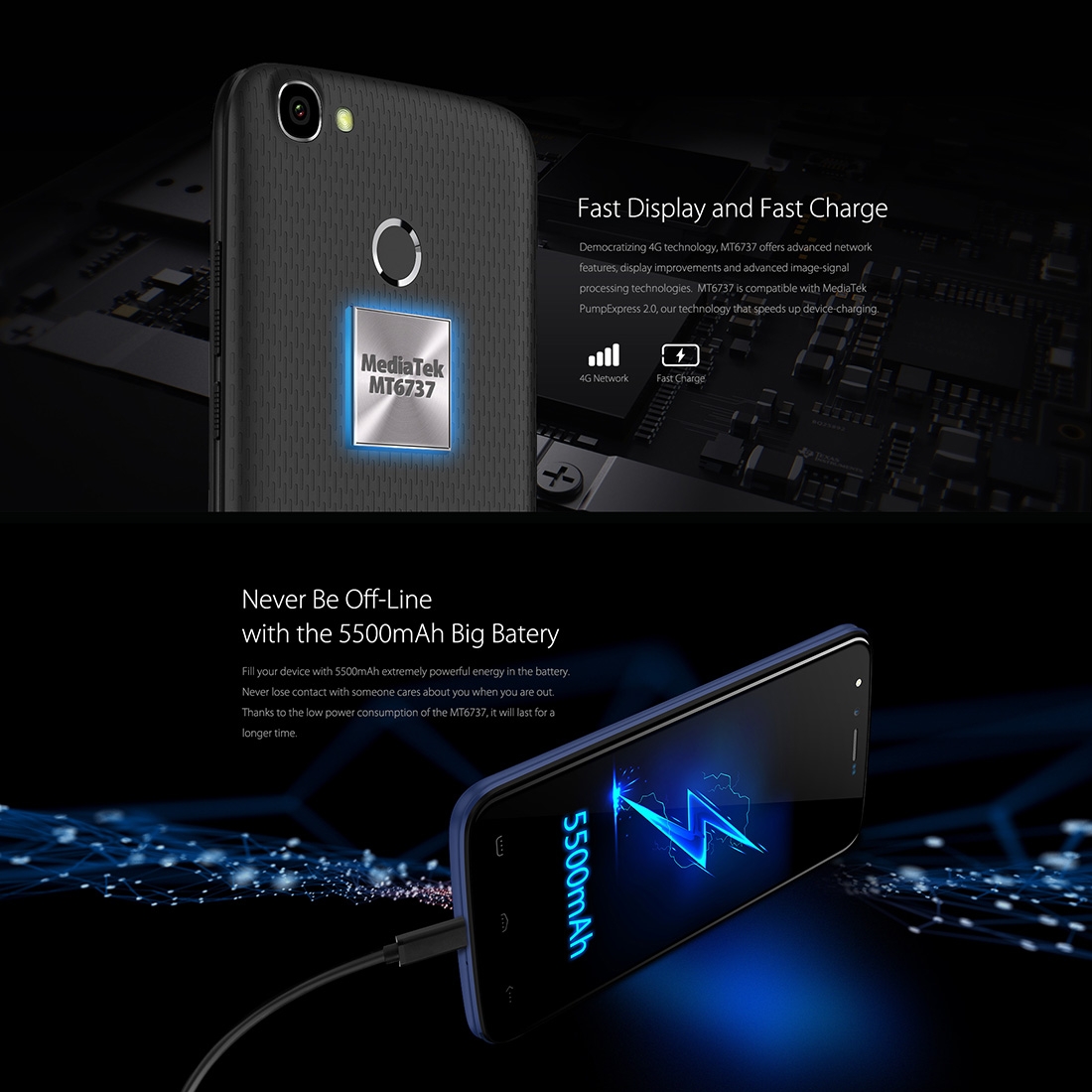 - Мощен 4-ядрен процесор MTK6737 с производителност 1.3 Ghz