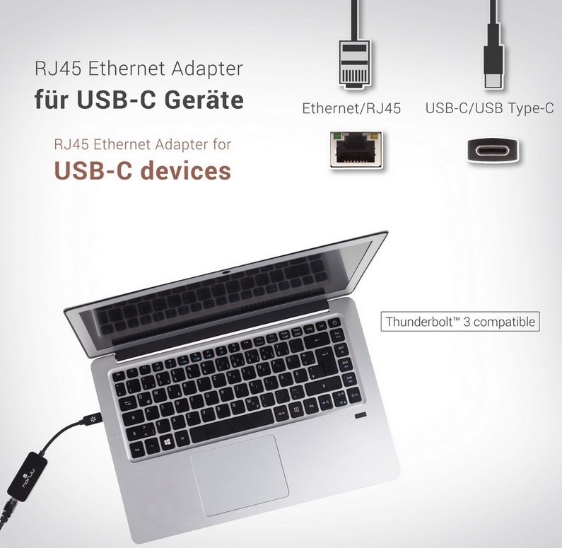 - Елегантен и компактен USB-C адаптер към Ethernet