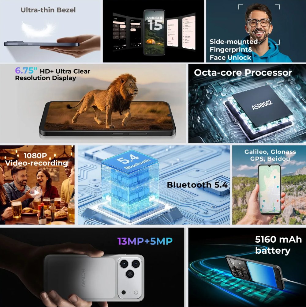 С батерия от 5160 mAh, HOTWAV A17 Pro Max е създаден да бъде в крак с вашия динамичен график. Можете да се наслаждавате на до 33 часа музика или 22 часа разговори само с едно зареждане. В режим на готовност телефонът издържа впечатляващите 400 часа. Bluetooth 5.4 и Wi-Fi 6 осигуряват светкавична скорост при обмен на данни.