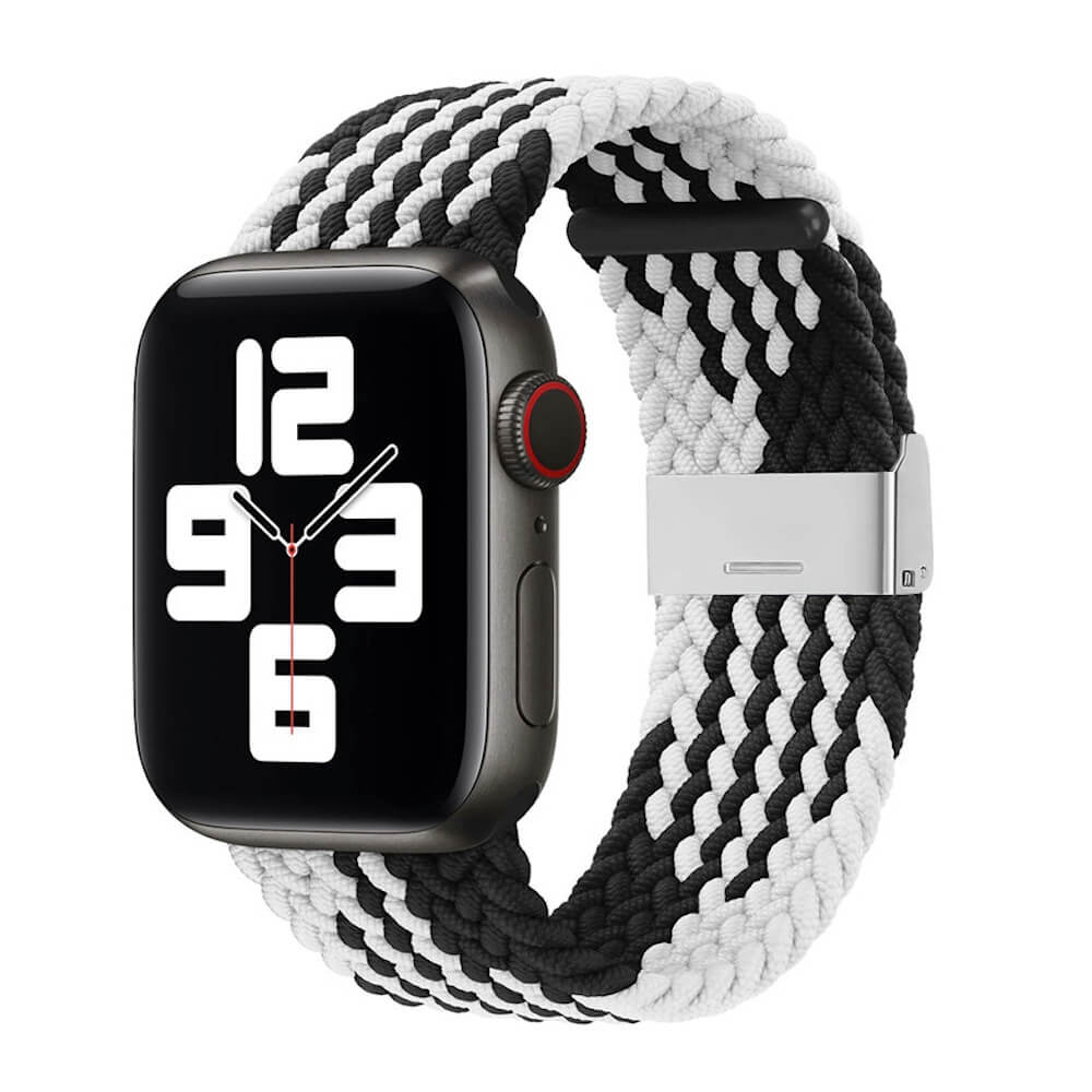 HR Braided Fabric Strap - текстилна каишка за Apple Watch 42мм, 44мм, 45мм, 46мм, Ultra 49мм (бял-черен)