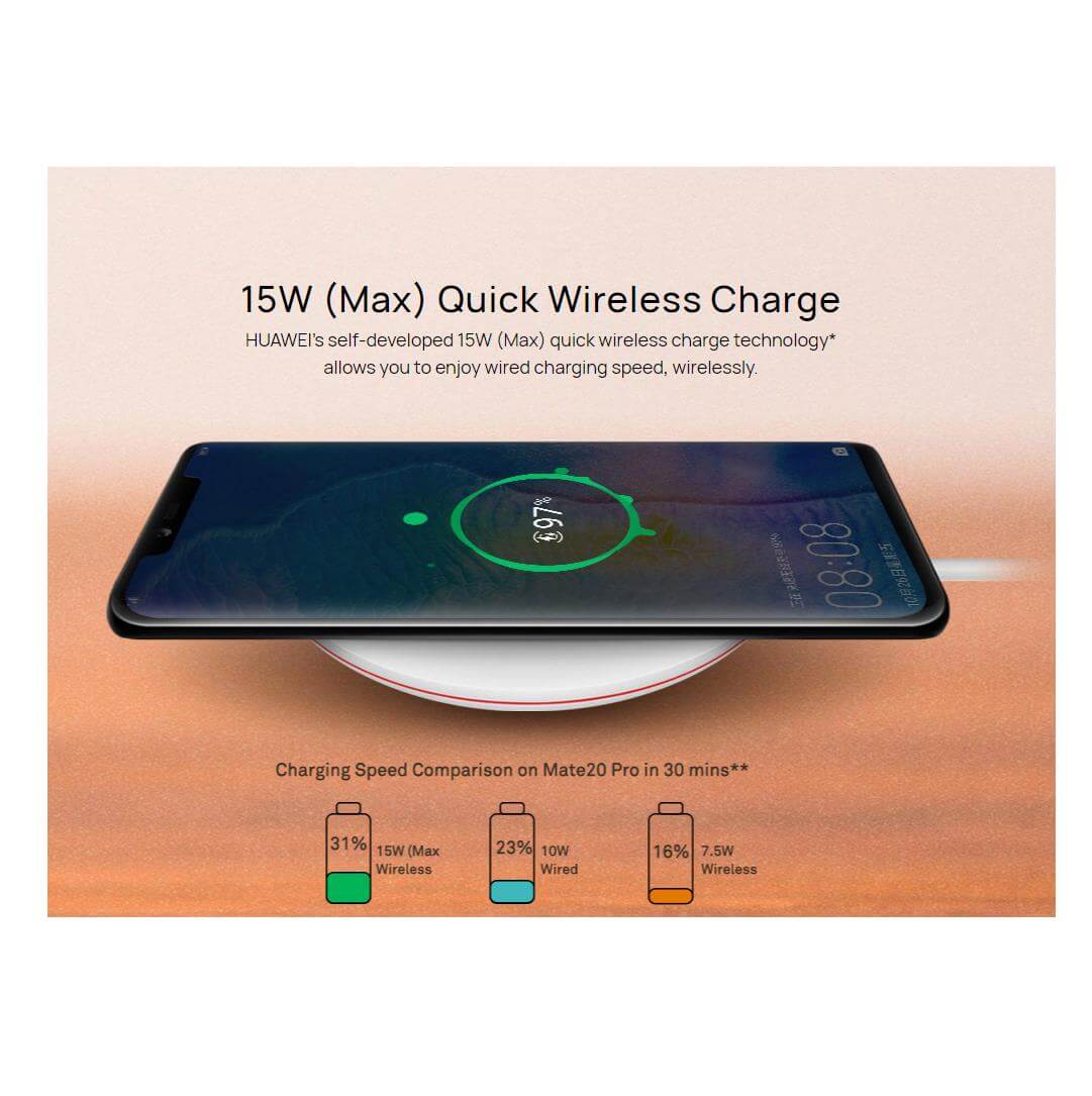 - Използването на безжичната Qi технология в тази поставка осигурява безкабелно зареждане, със скорост до 15W. Просто поставете своя смартфон на повърхността на поставка и зареждането започва автоматично. Дори не е необходимо да сваляте предпазният си кейс, защото поставка е изработена така, че лесно да зарежда смартфона ви, дори и през калъф