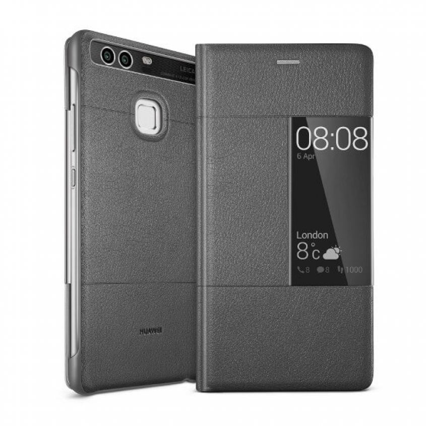 Huawei Flip Case with Window - оригинален кожен калъф с отвор за дисплея за Huawei P9 Plus (тъмносив)
