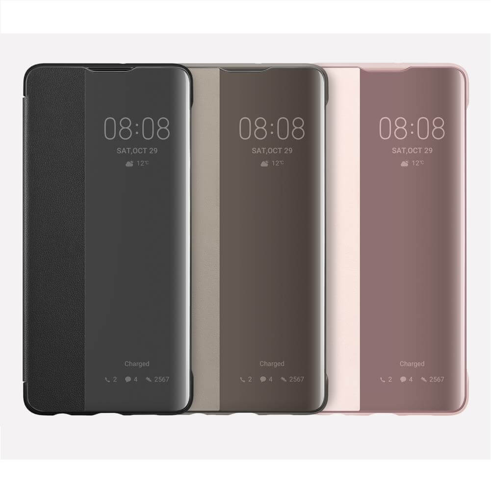 Huawei Smart View Flip Cover - оригинален кожен калъф за Huawei P30 (бежав)