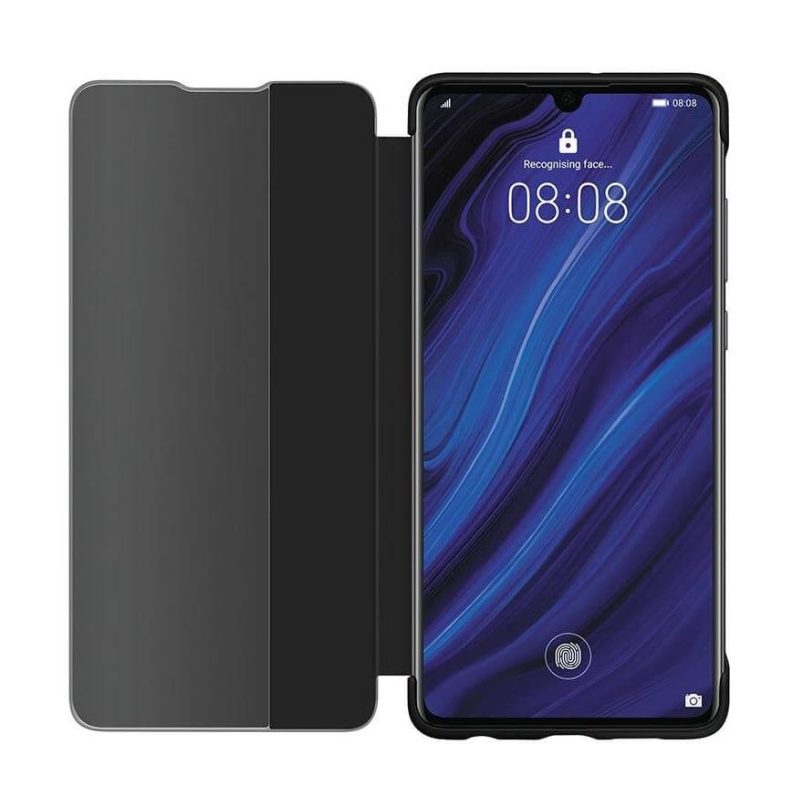 Huawei Smart View Flip Cover - оригинален кожен калъф за Huawei P30 (черен)