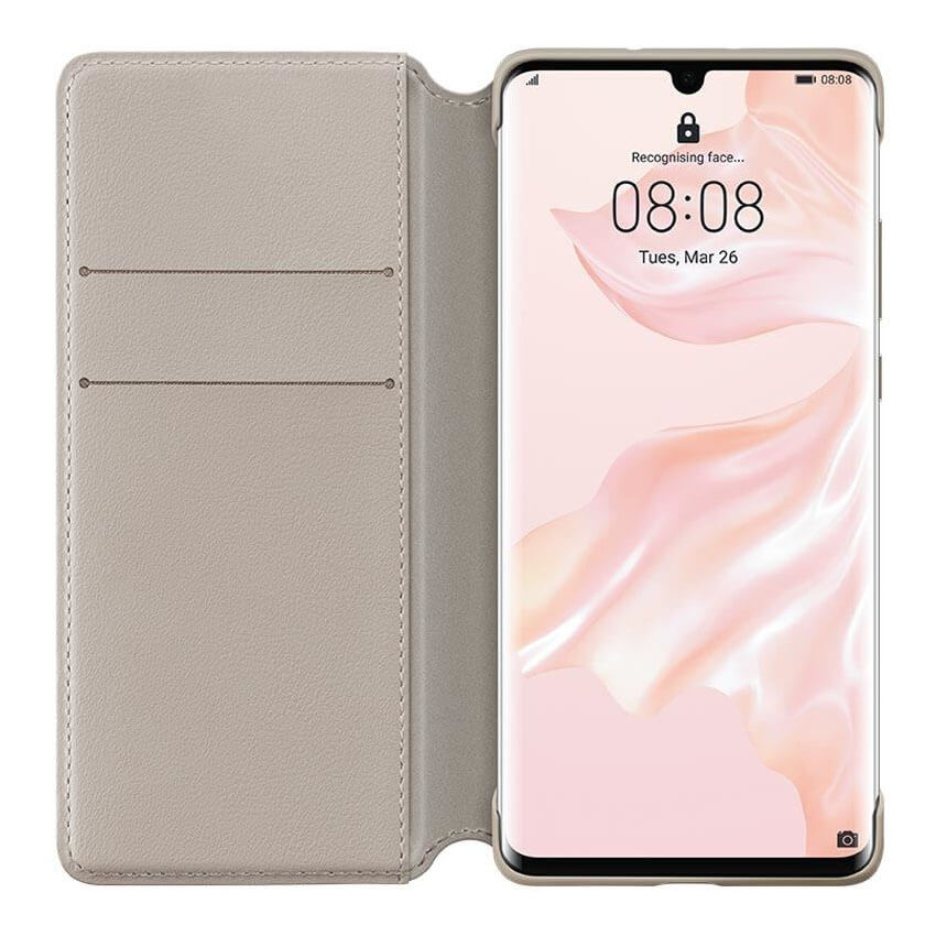Huawei Wallet Cover Case - оригинален кожен калъф с поставка за Huawei P30 Pro (бежав)