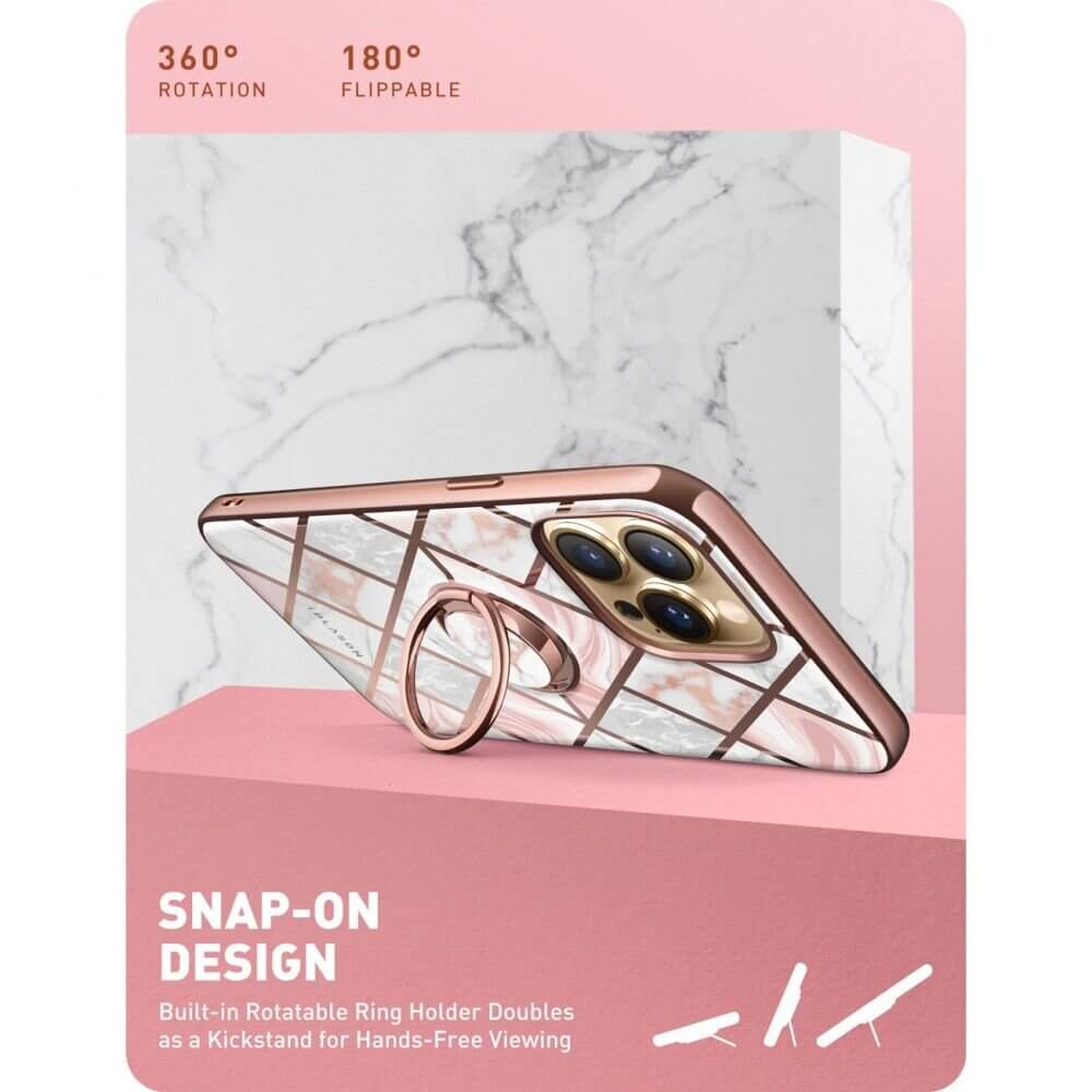 i-Blason Cosmo SupCase Protective Case - удароустойчив хибриден кейс с пръстен против изпускане за iPhone 13 Pro Max (розов)