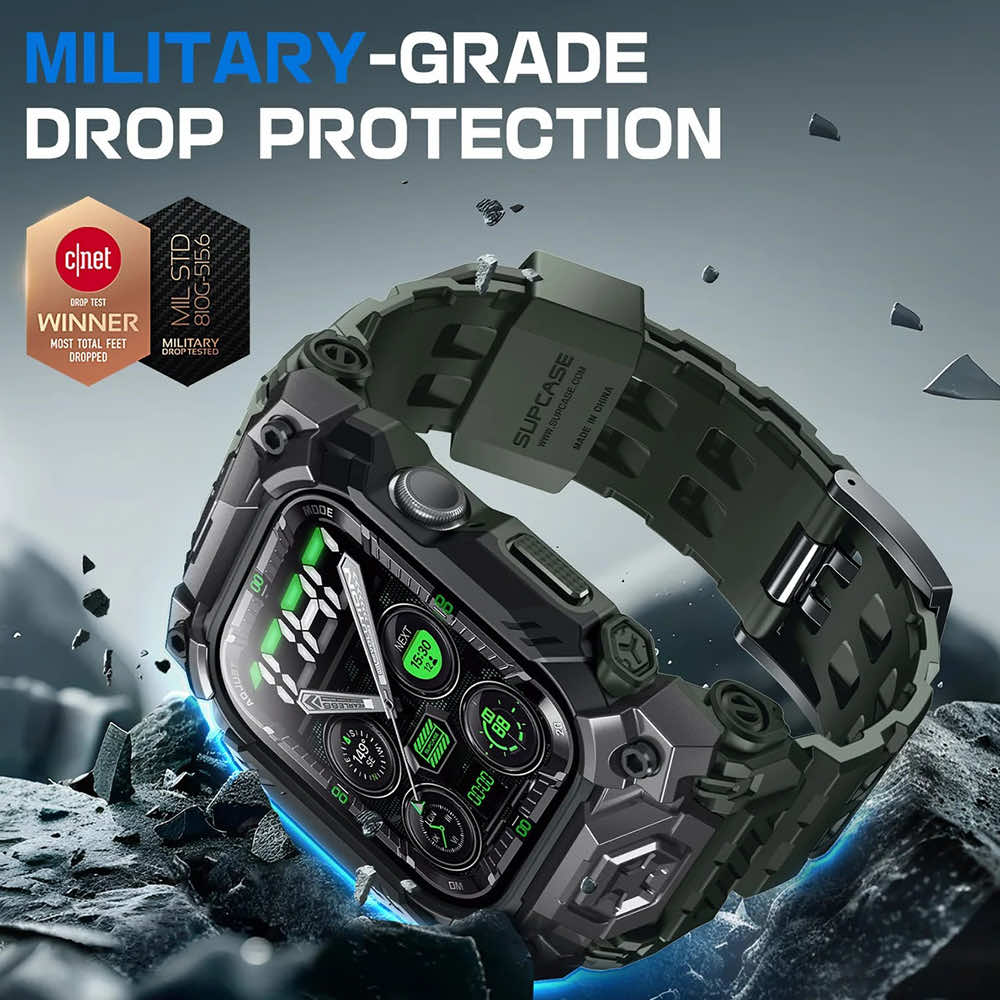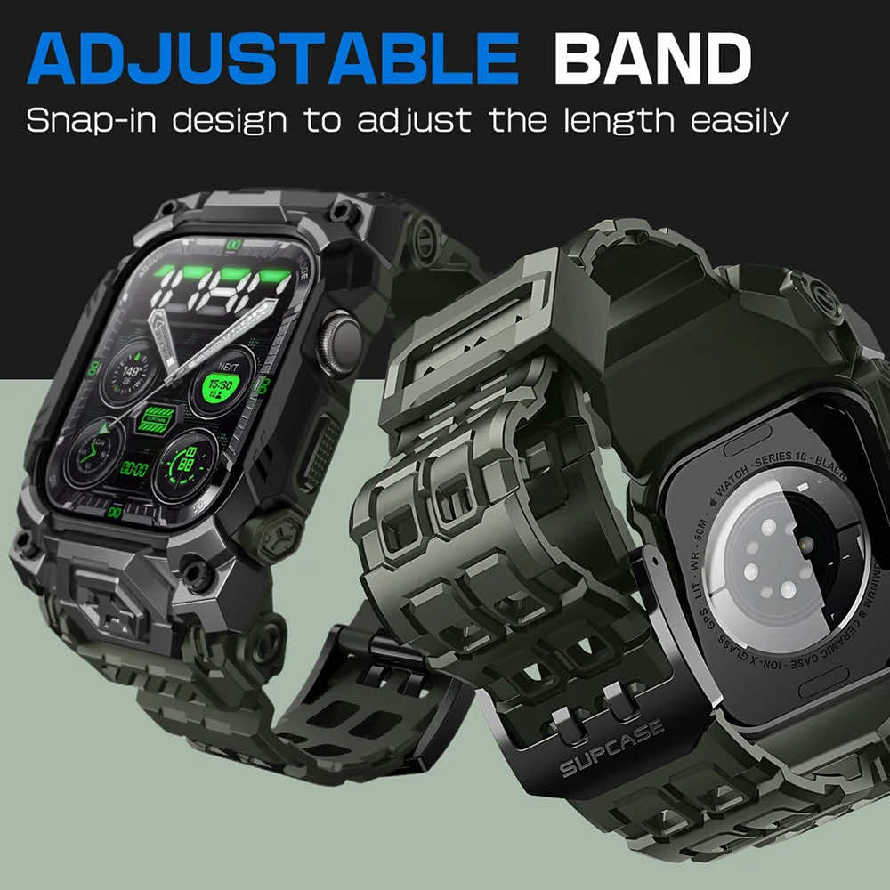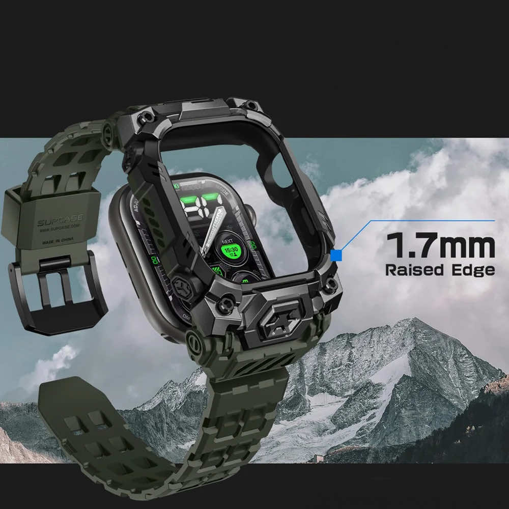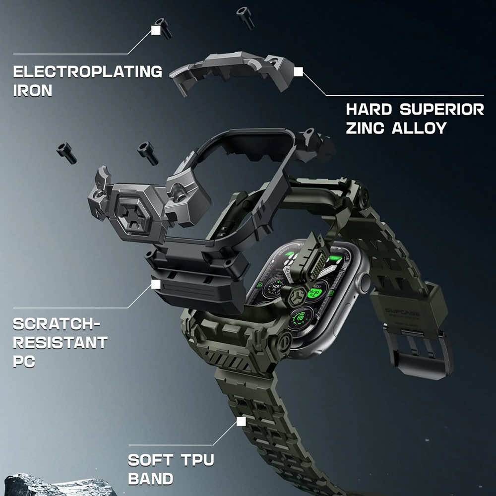 i-Blason SUPCASE Unicorn Beetle Ore Case - удароустойчив алуминиев кейс от най-висок клас с вградена каишка за Apple Watch 10 46мм (2024) (зелен)