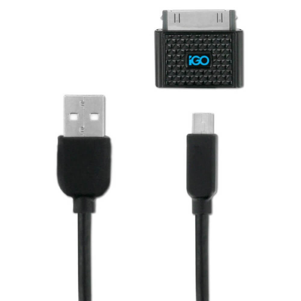 - iGo microUSB кабел (120 см) - microUSB към miniUSB адаптер - microUSB към 30-pin Apple Dock адаптер