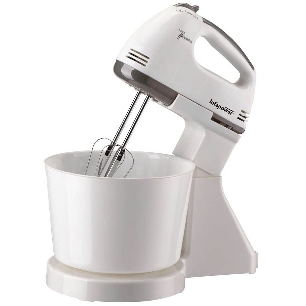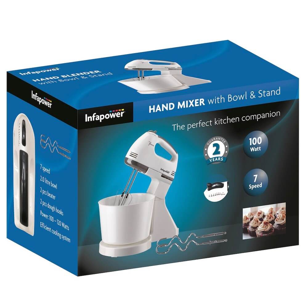 Infapower 7 Speed Hand Mixer 100w with Bowl & Stand 100W - високачествен миксер с купа и поставка (бял)
