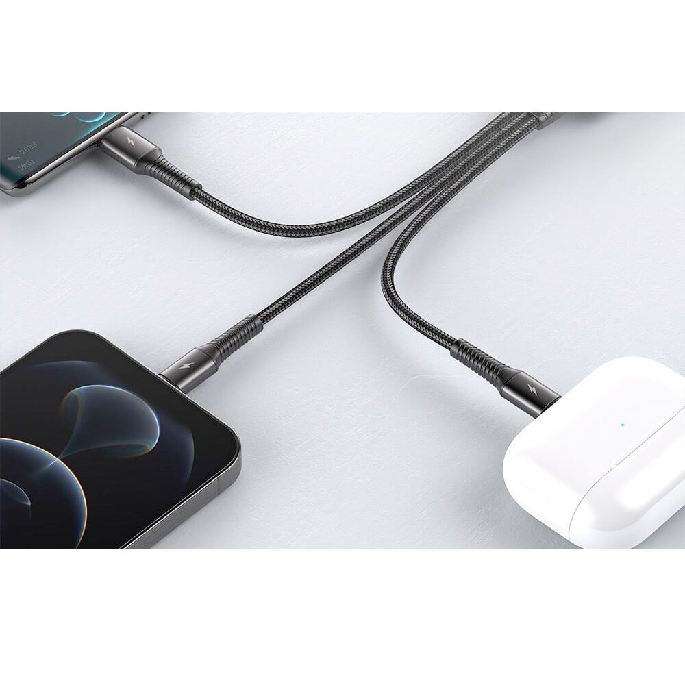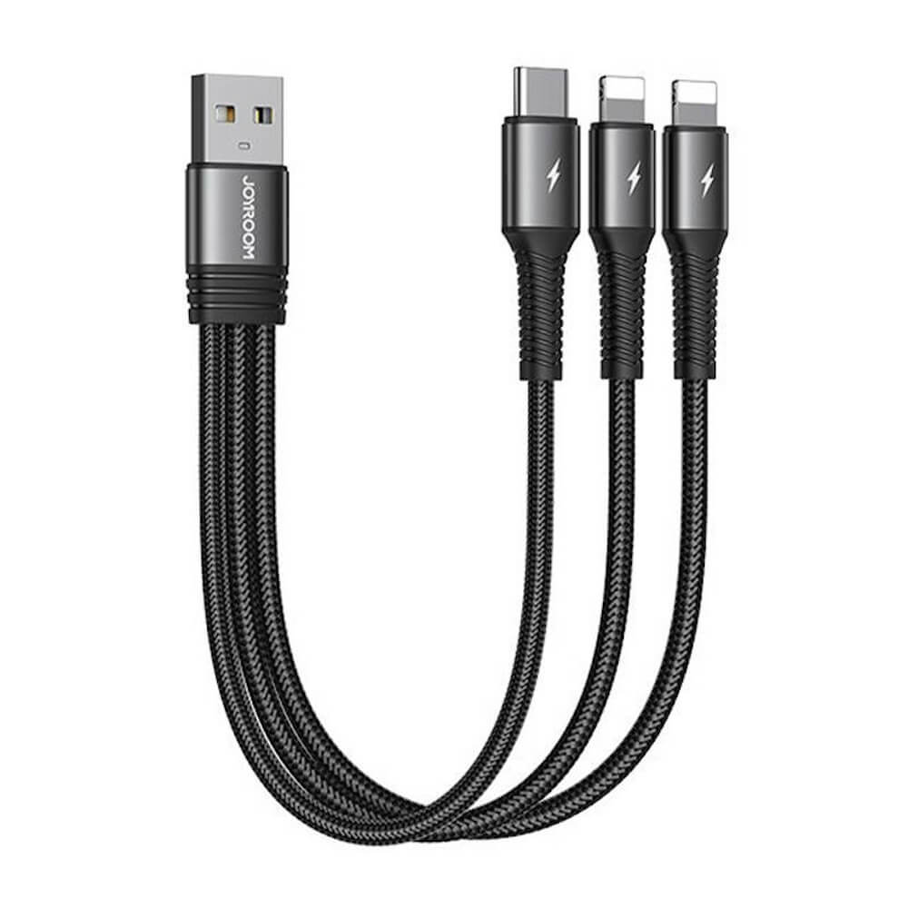 Joyroom 3-in-1 Fast Charging Cable 3.5A - универсален USB-A кабел с 2xLightning и USB-C конектори (15 см) (черен)