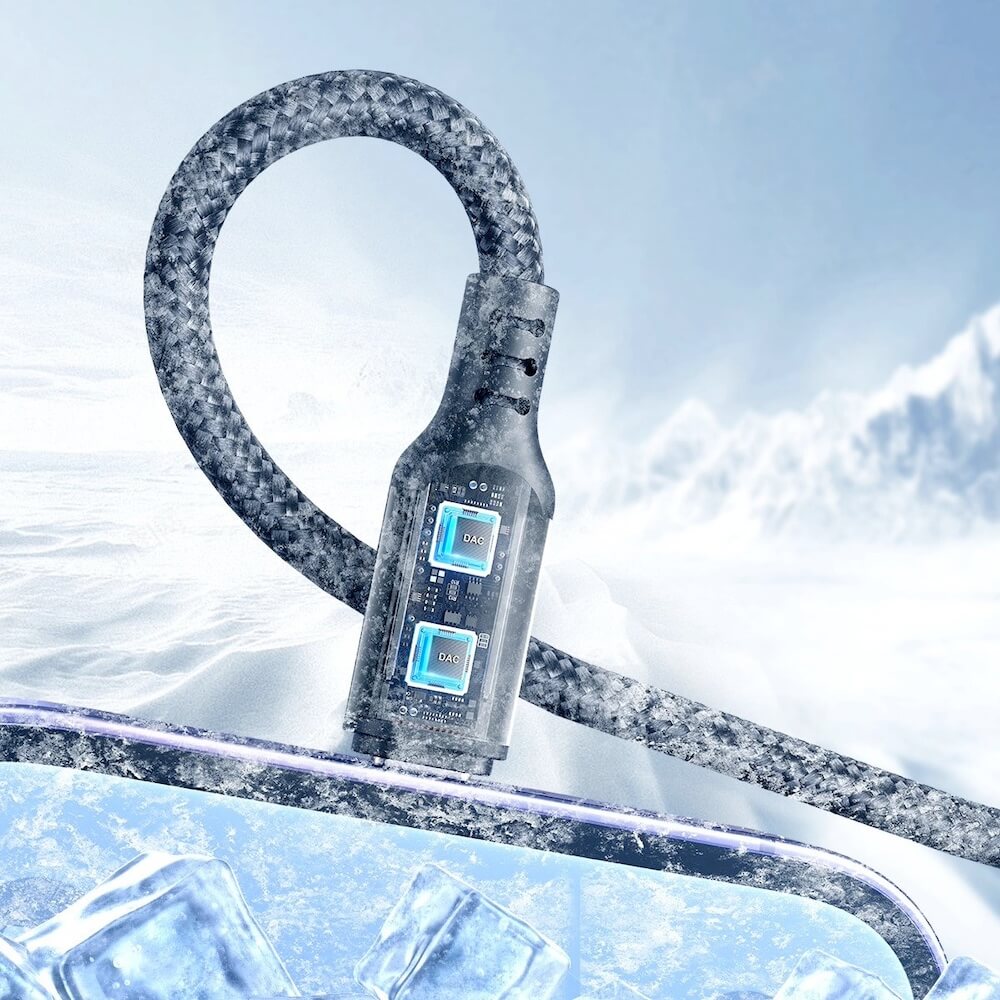 - Здрав, обвит във въжена оплетка кабел за устройства с Lightning, USB-C или microUSB порт