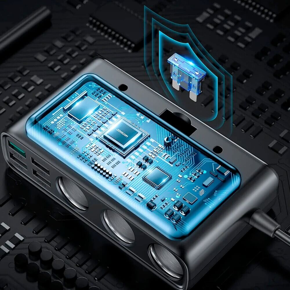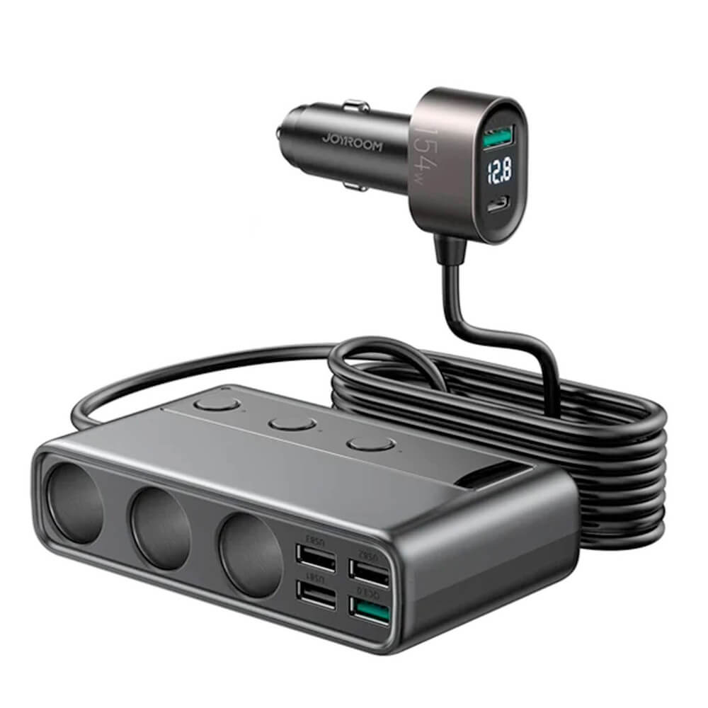 Joyroom 9-in-1 Car Charger 154W - зарядно за кола с 1xUSB-C и 5xUSB-A изходи и 3 извода за запалка (черен)
