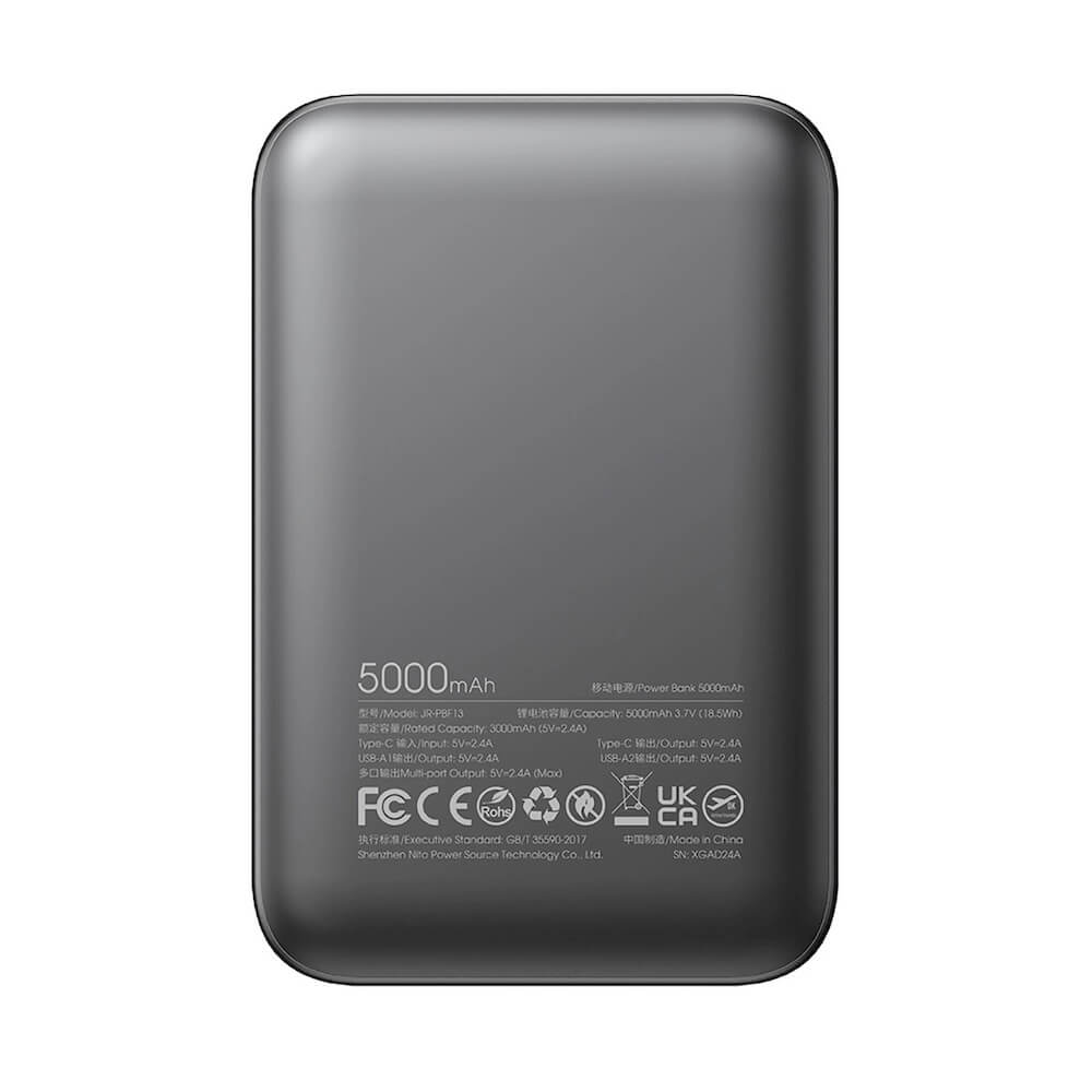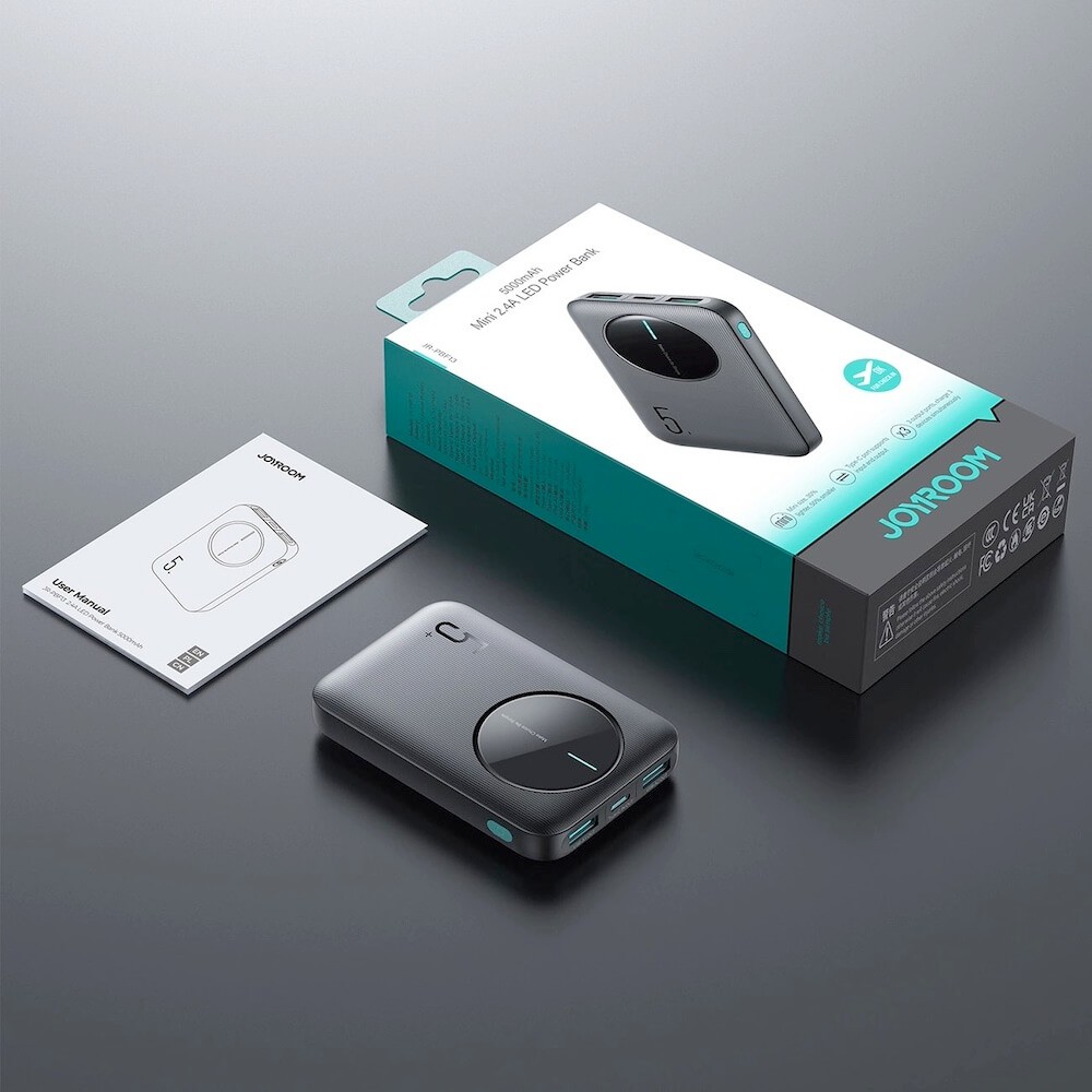 Joyroom LED Power Bank 5000 mAh 12W - преносима външна батерия с USB-C порт, и 2xUSB-A изхода (черен)