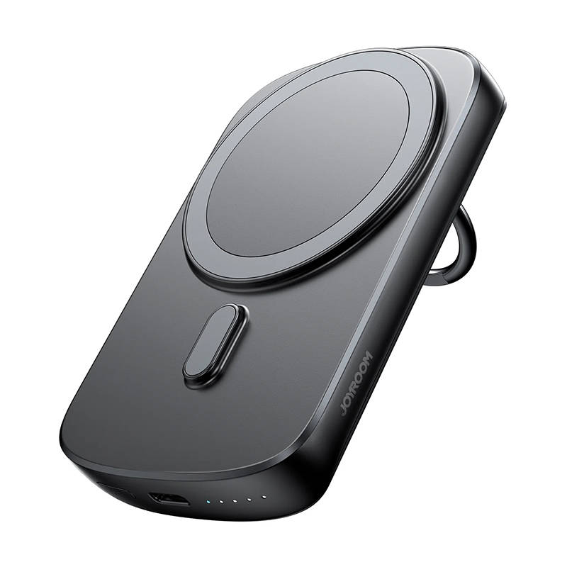 Joyroom Magnetic Wireless Ring Holder Power Bank 6000 mAh 20W - преносима външна батерия с USB-C порт, безжично зареждане с MagSafe и пръстен против изпускане (черен)