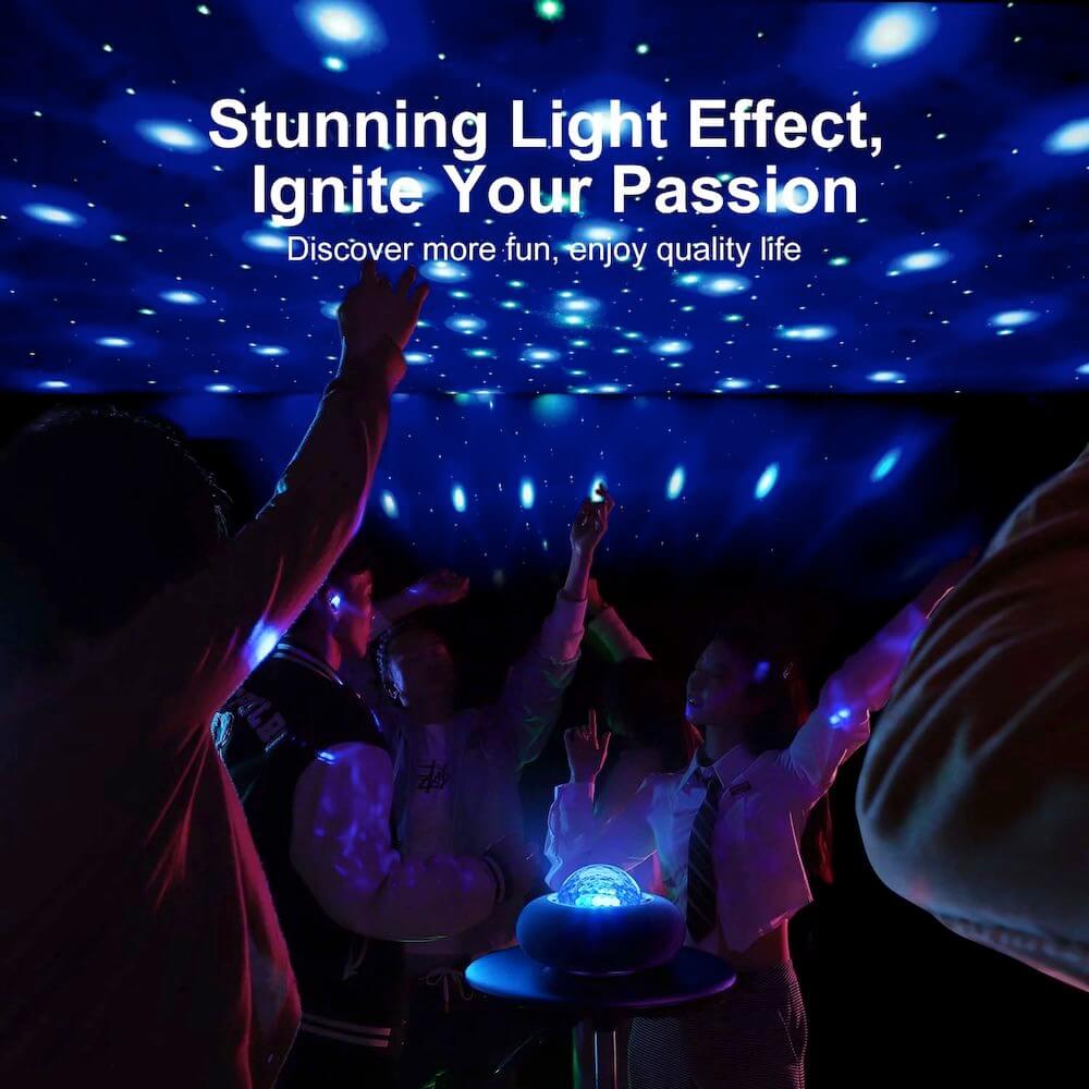 - Синхронизирани пулсиращи светлини, които отговарят на ритъма на музиката.