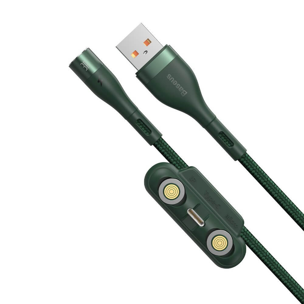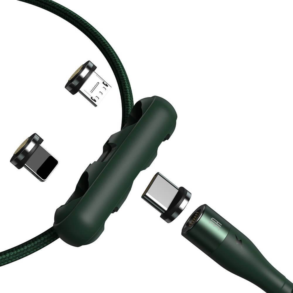 Кабел с магнитни конектори за Apple продукти с Lightning, microUSB и USB-C (100 см) - Baseus Zinc Magnetic Safe Fast Charging Data Cable (CA1T3-A06) (зелен)