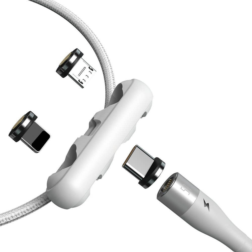 Кабел с магнитни конектори за Apple продукти с Lightning, microUSB и USB-C (100 см) - Baseus Zinc Magnetic Safe Fast Charging Data Cable (CA1T3-B02) (бял)