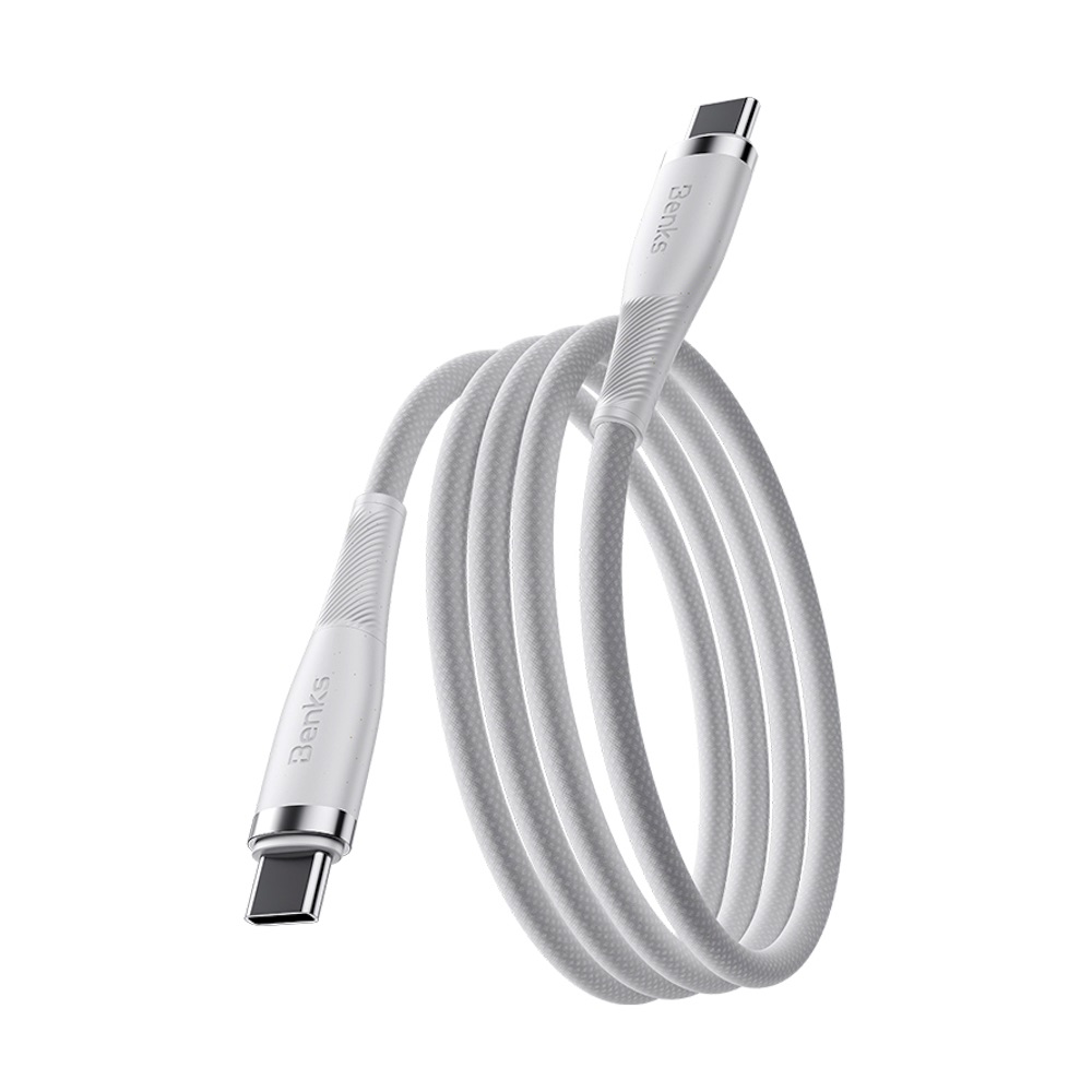 Кабел с въжена оплетка и бързо зареждане за устройства с USB-C порт - Benks PowerWeave USB-C to USB-C Braided Cable 100W PD (100 см) (бял)